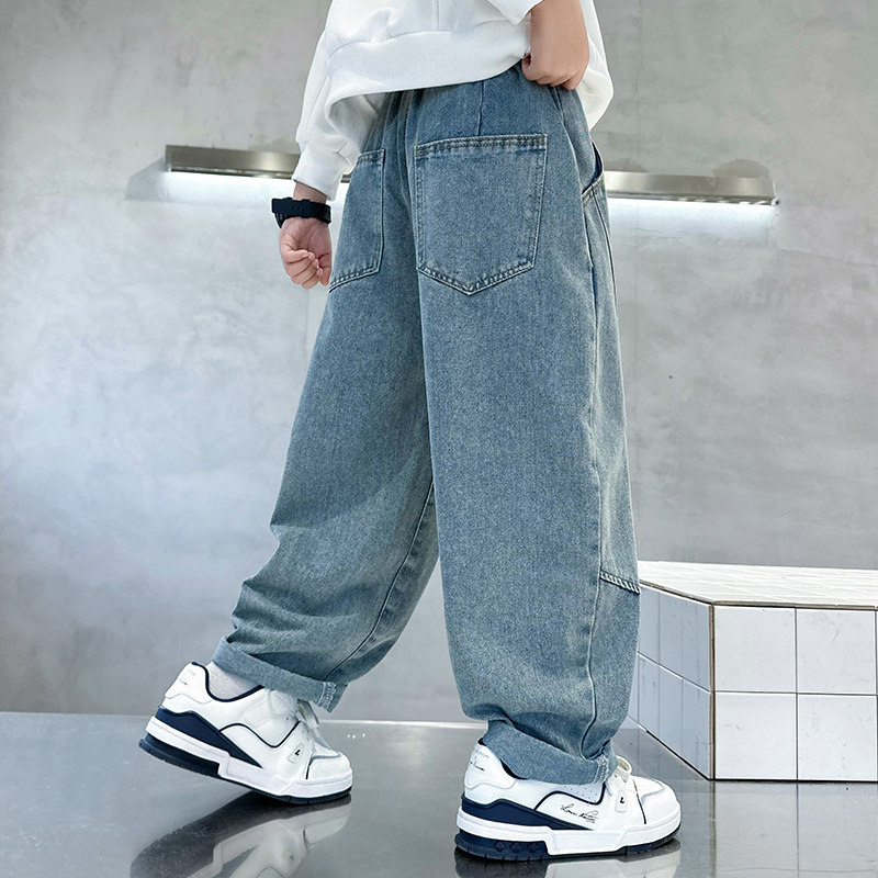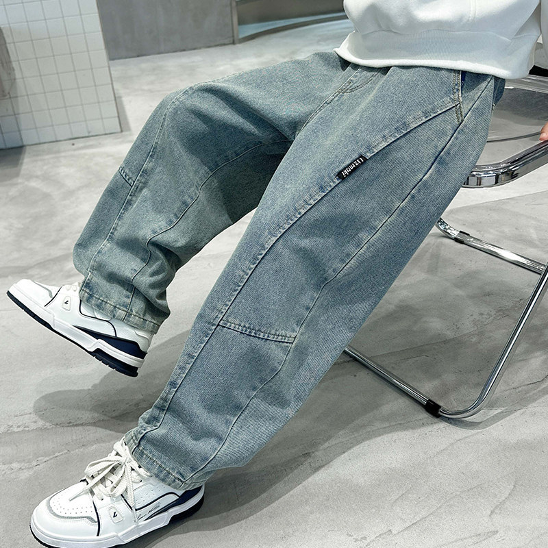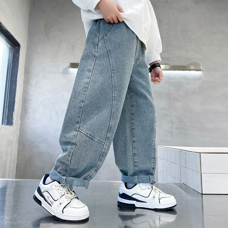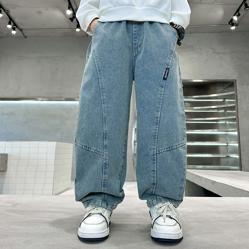 男童牛仔裤2025新款春秋加绒加厚儿童弯刀裤大童长裤宝宝男孩裤子