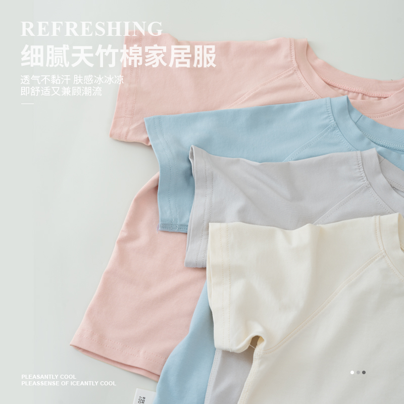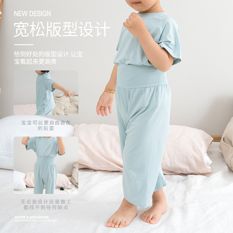 拉波米夏季儿童天竹棉睡衣家居服套装薄款男女宝宝打底短袖七分裤