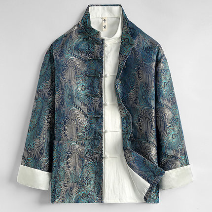唐装男春季新款中国风男装改良长袖外套原创中式盘扣国潮印花上衣
