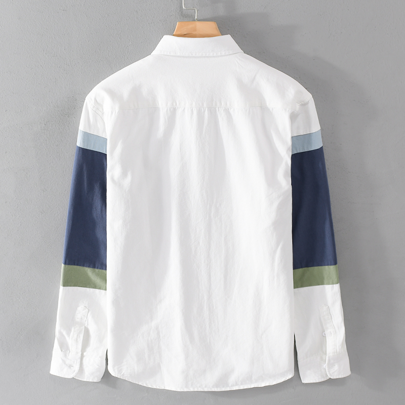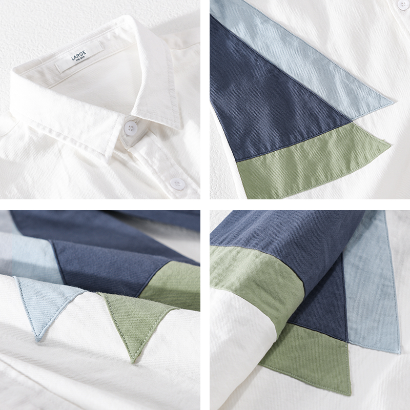 春季小众设计感拼色衬衫男白色纯棉休闲衬衣日系高端免烫内搭外套