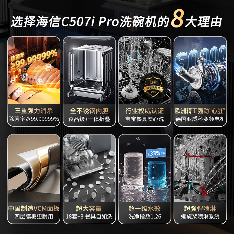 海信大薄荷零菌洗碗机家用全自动嵌入消毒柜独立式一体18套507Pro