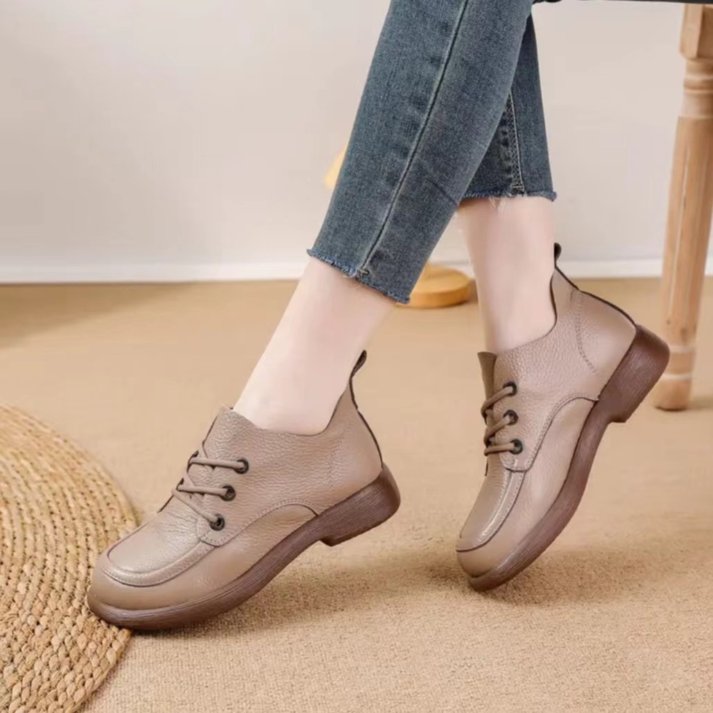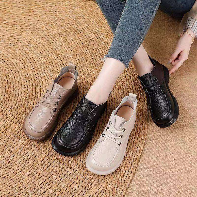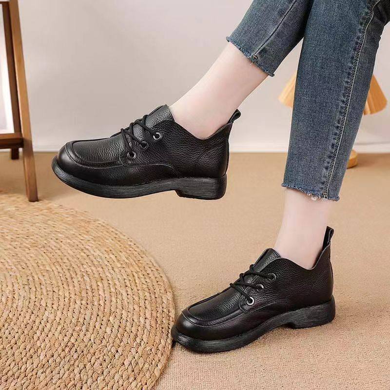 【真牛皮】秋冬新款真皮马丁靴女复古靴子平底软底系带短靴妈妈鞋
