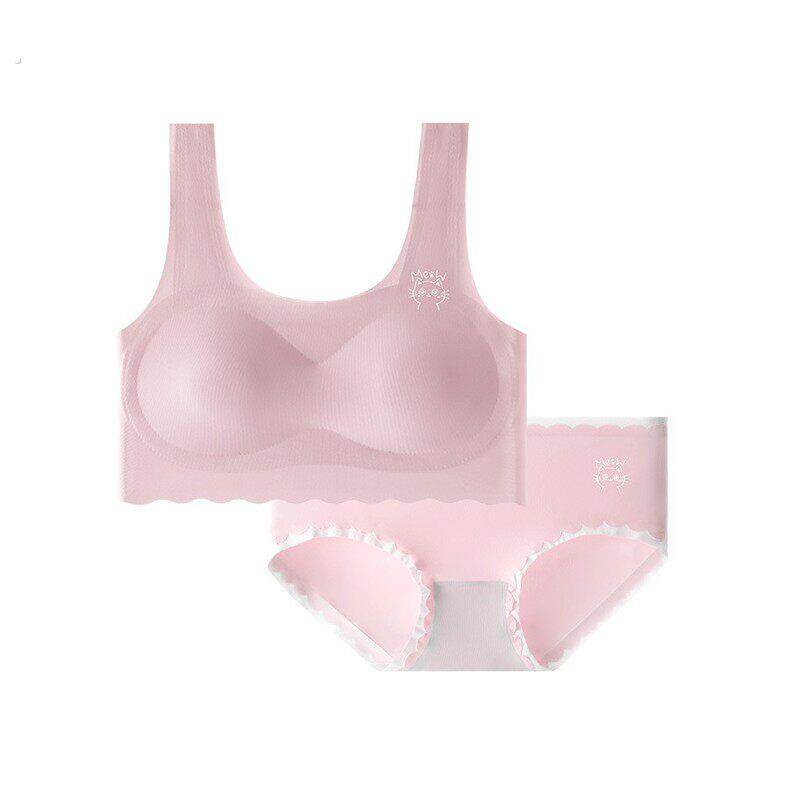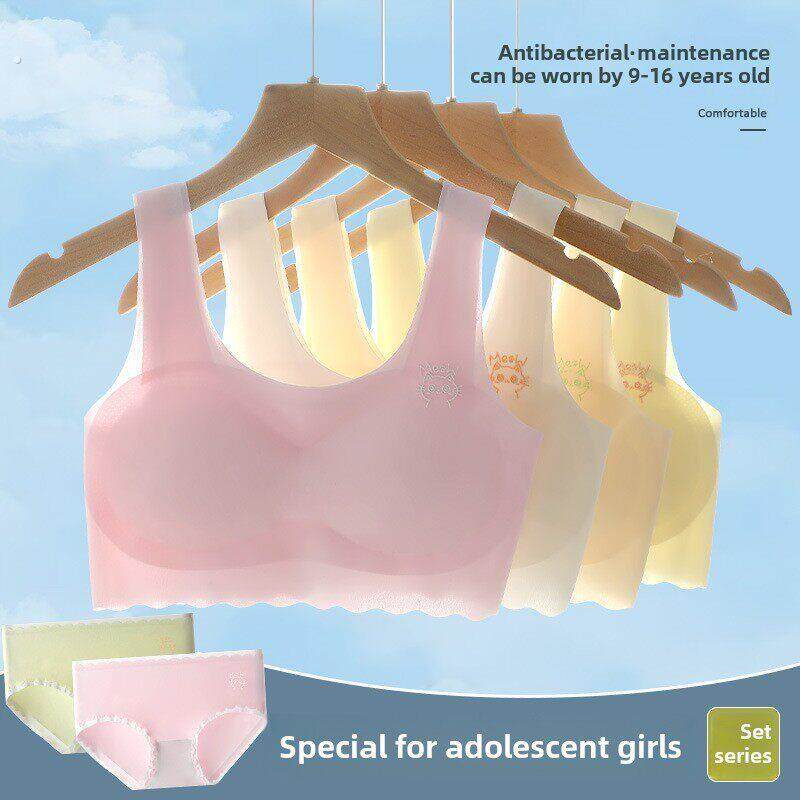 乳胶垫内衣内裤套装初中高中学生小胸发育期大童无痕背心少女文胸