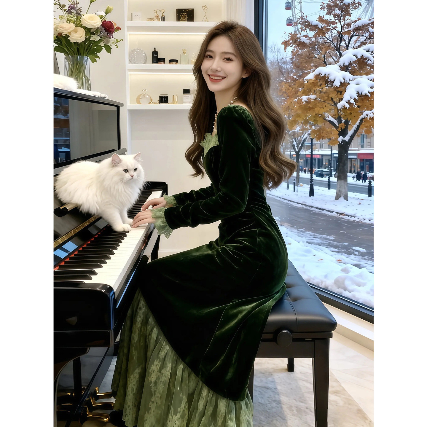 法式复古高级感丝绒连衣裙礼服裙