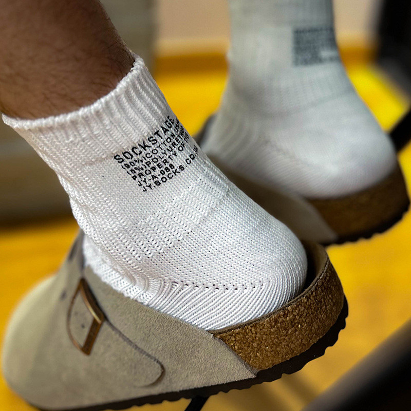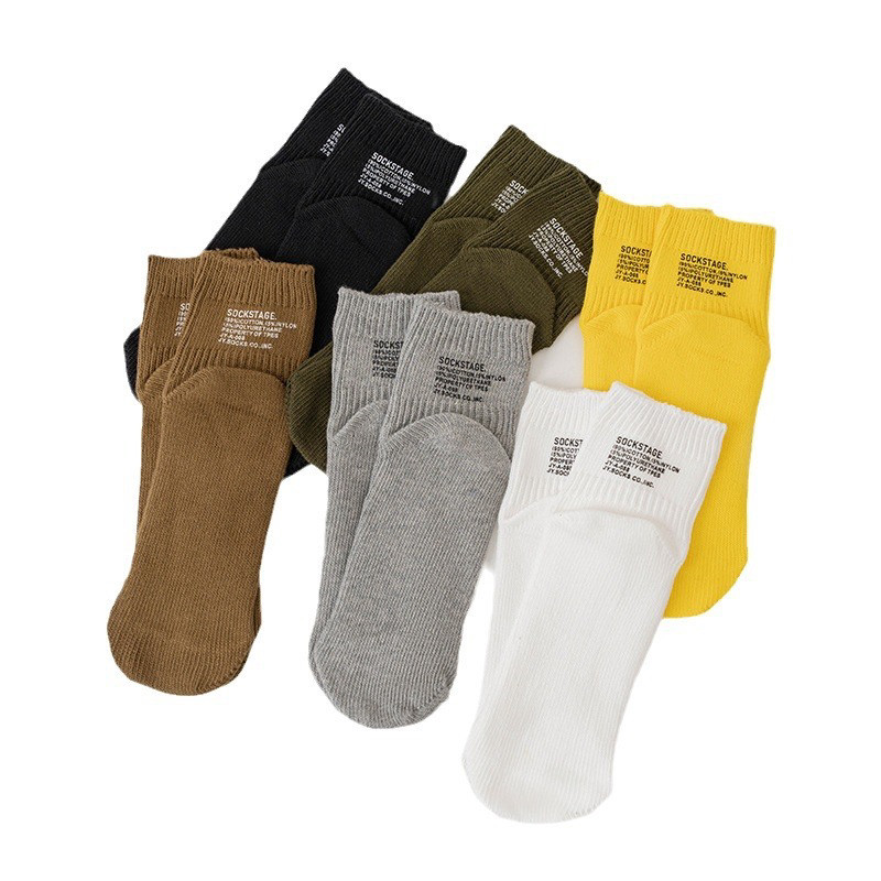 春夏简约纯色日系复古粗针糖果色字母印花低帮短袜棉袜粗线男袜潮