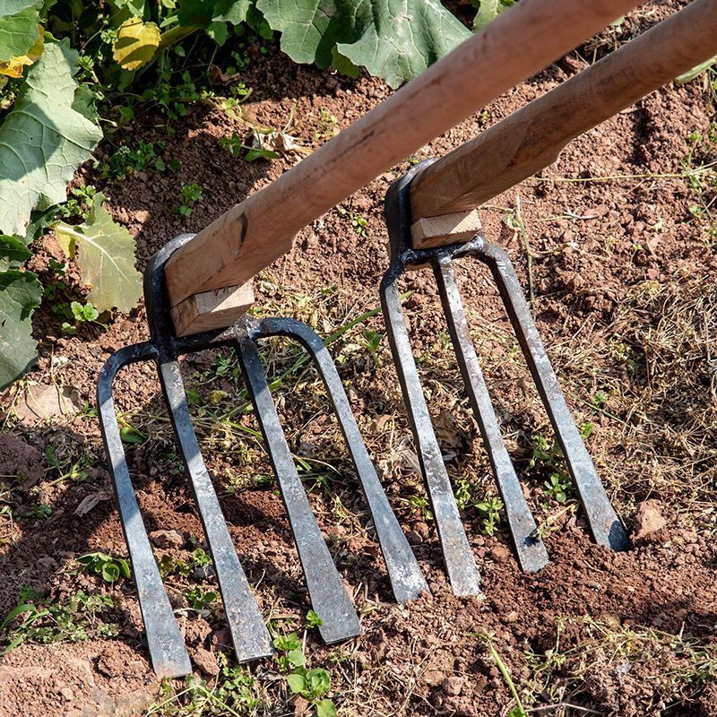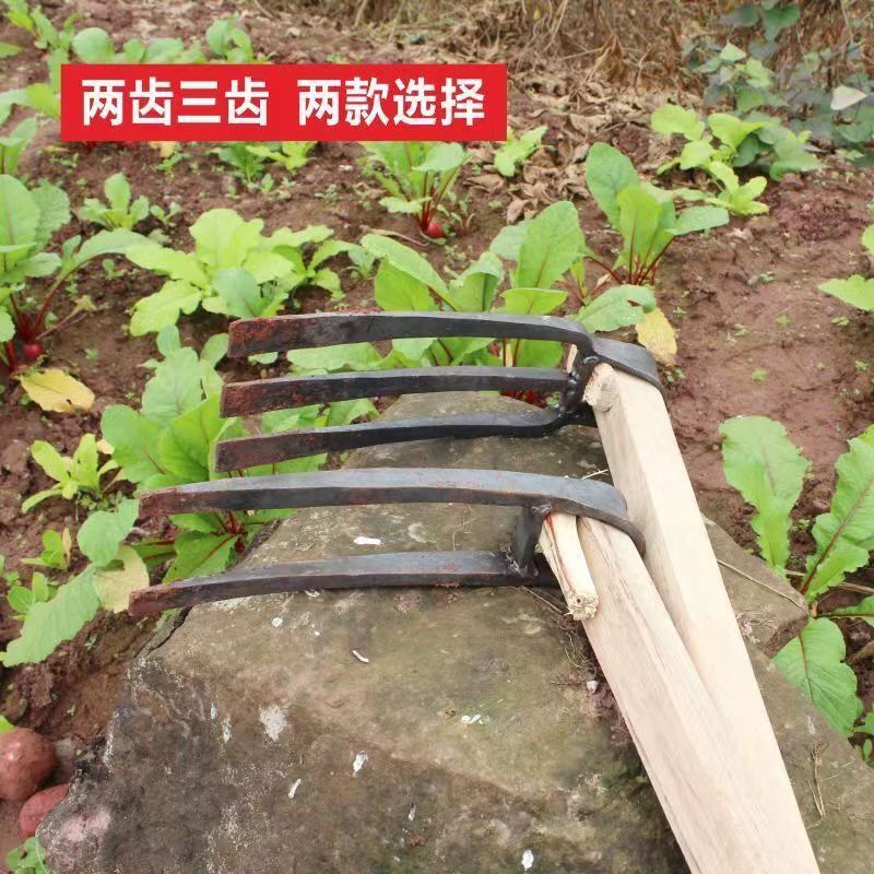 老式二齿锄头锰钢锻打挖地松土挖笋农用工具家用种菜多功能两齿耙