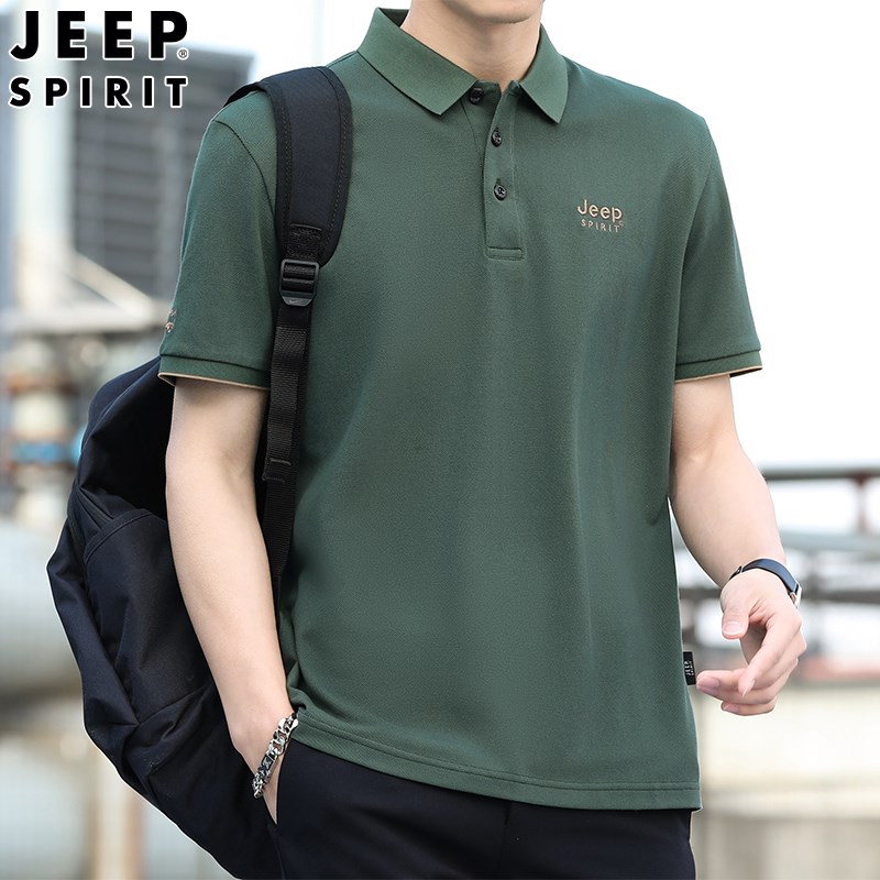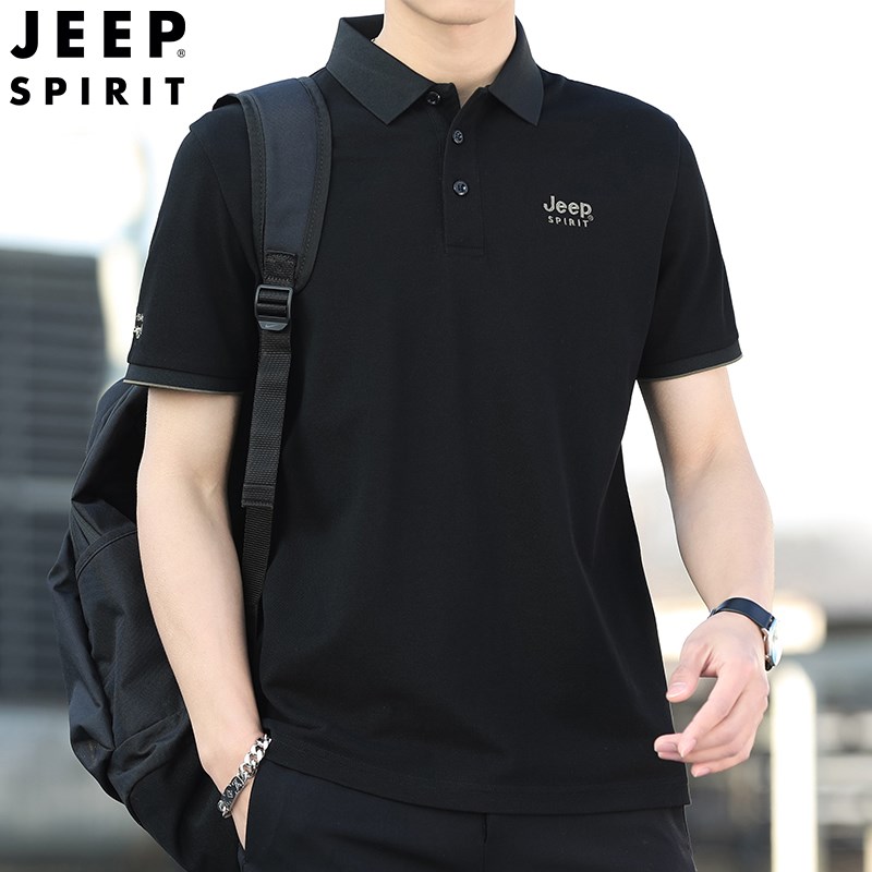 JEEP吉普短袖t恤男纯色商务翻领POLO衫夏季透气宽松大码半袖上衣