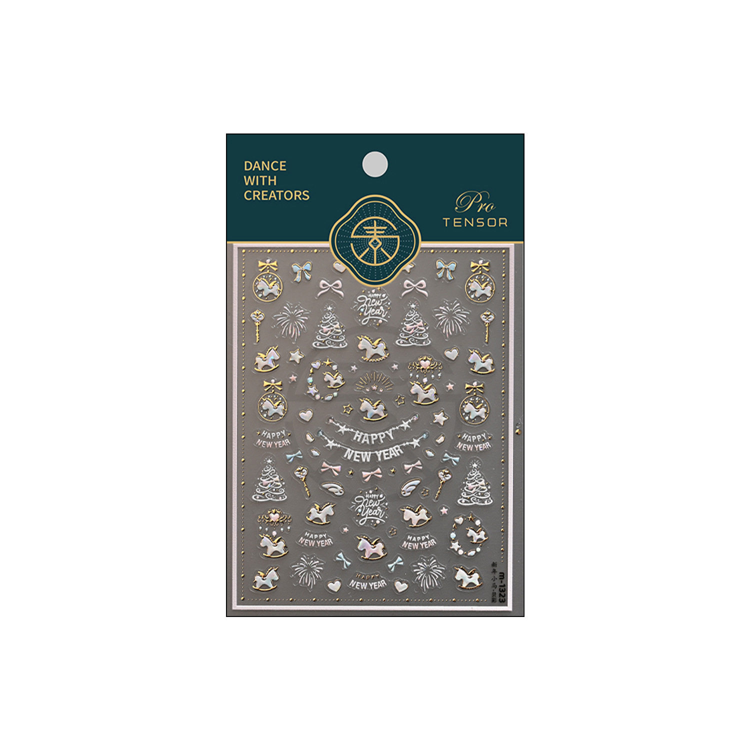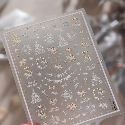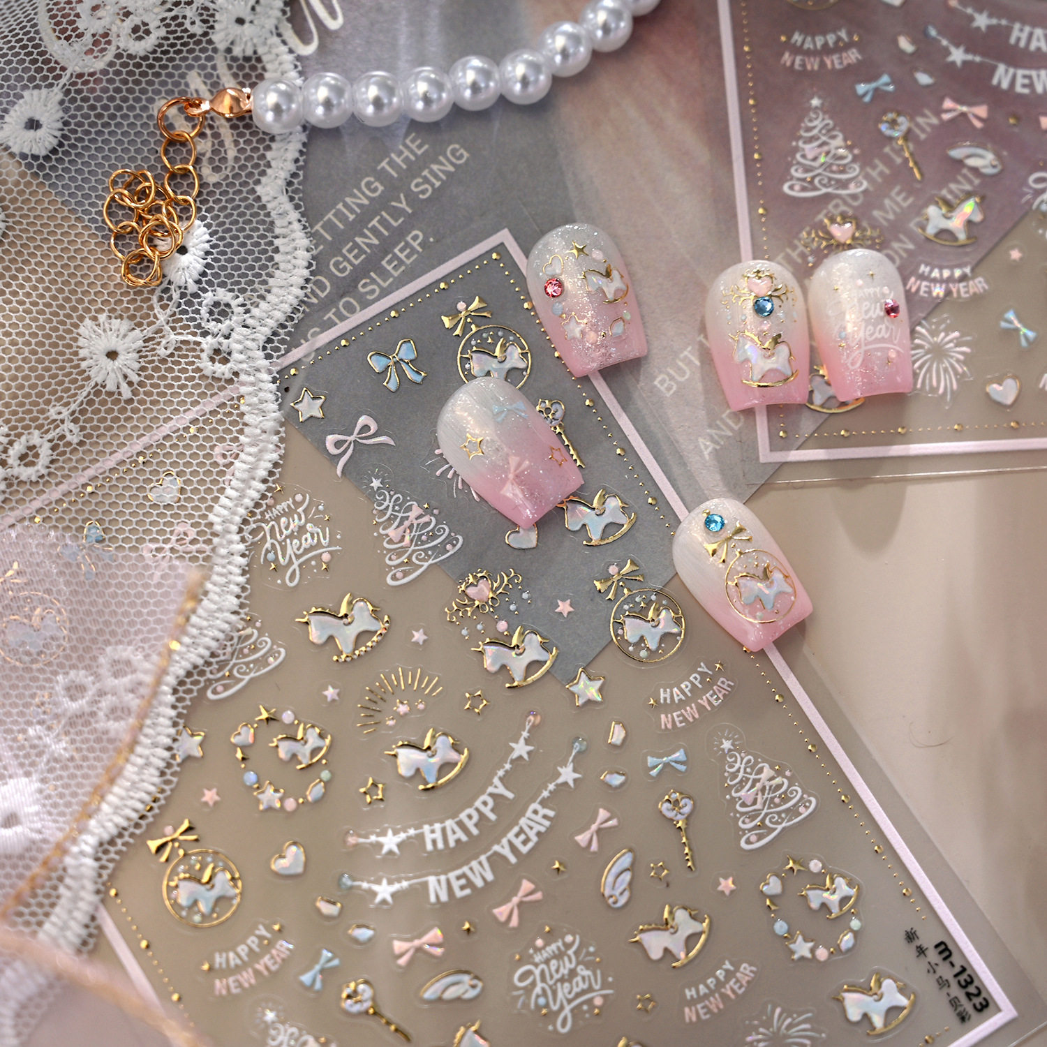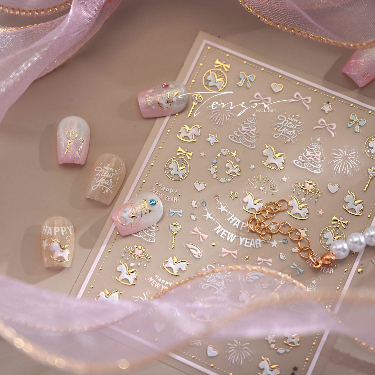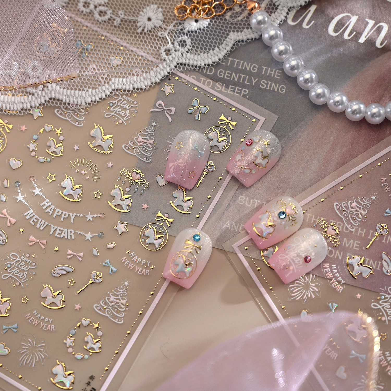 新年小马梦幻烫金立体美甲贴纸春节装饰指甲电脑手机壳iPad贴画