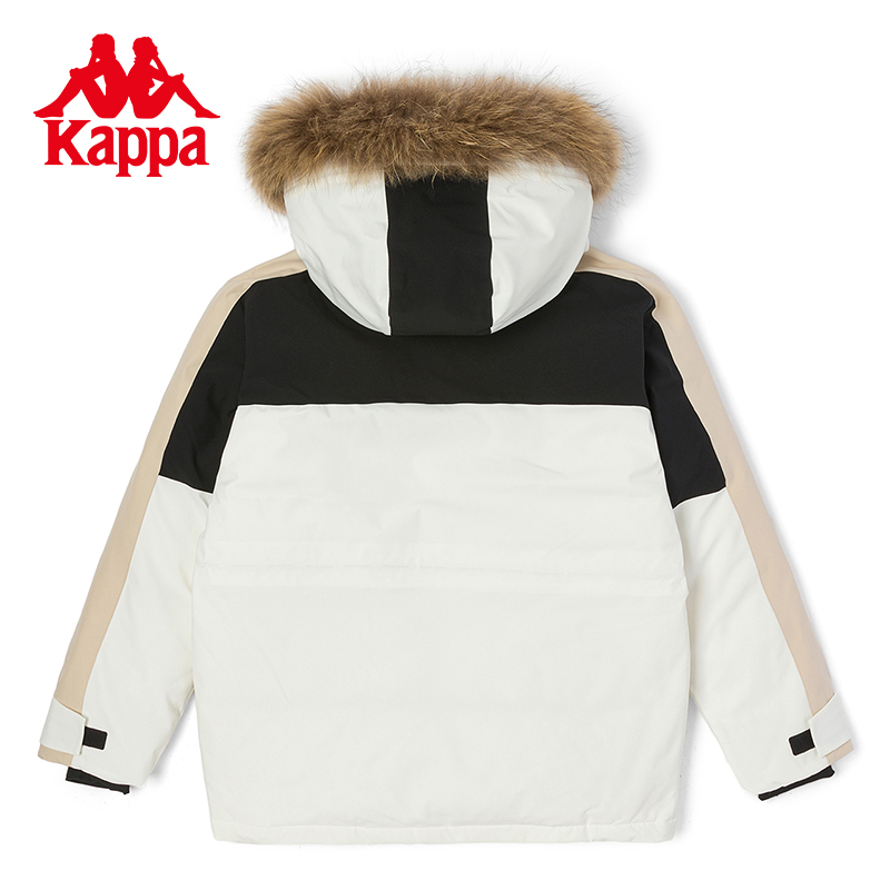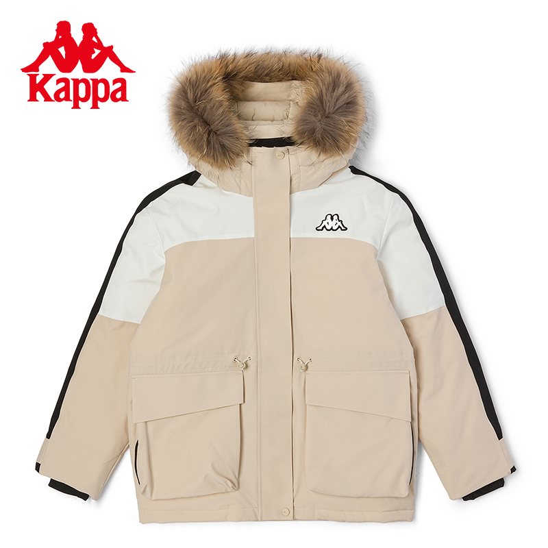 Kappa卡帕工装羽绒服新款女毛领连帽拼色防寒面包服K0C82YY46