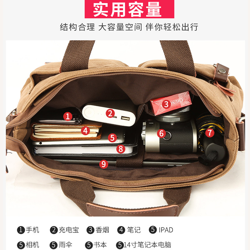 潮流商务公文包男士单肩斜挎包帆布包休闲简约背包大容量手提挎包