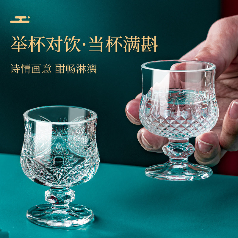 一两白酒杯玻璃家用小盏酒杯中国风中式套装创意迷你精致高脚酒具
