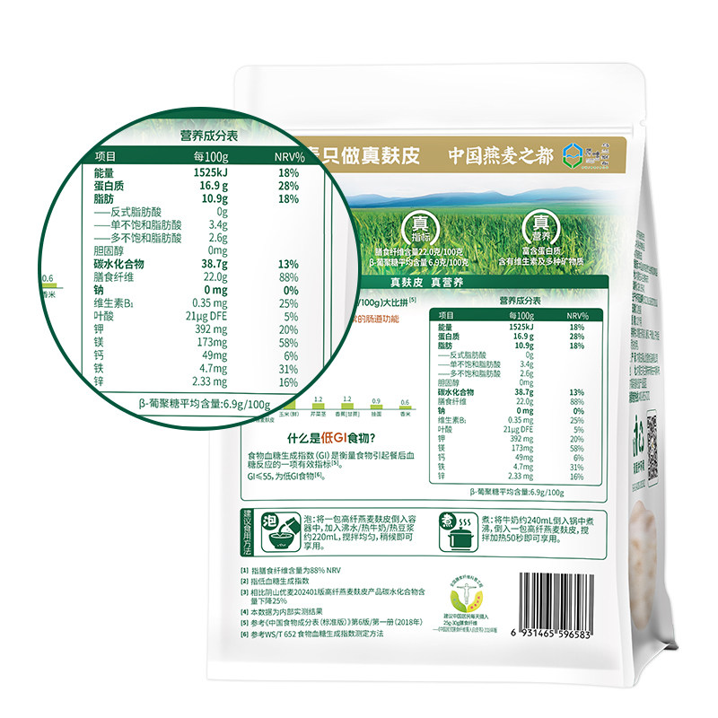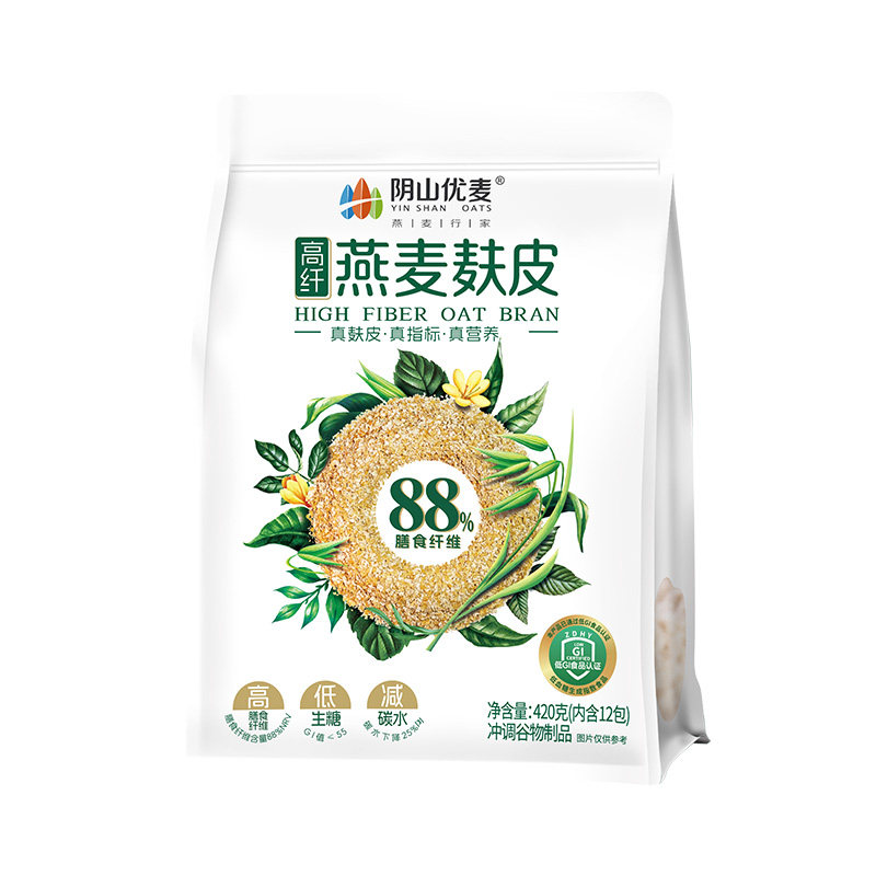 阴山优麦高纤燕麦麸皮420g高膳食纤维)无添加蔗糖即食麦片营养