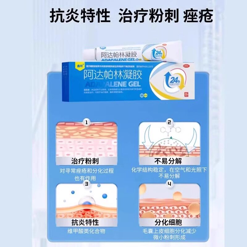 鑫烨阿达帕林凝胶10g粉刺丘疹脓疱寻常型痤疮正品官方旗舰祛痘药