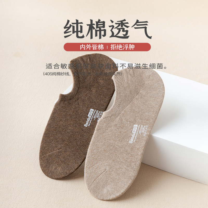100%纯棉防滑不掉跟男士船袜
