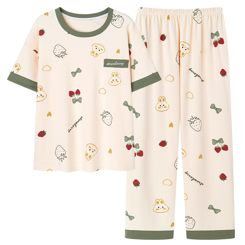 浪莎睡衣女春夏季纯棉短袖长裤可爱薄款全棉可外穿大码家居服套装