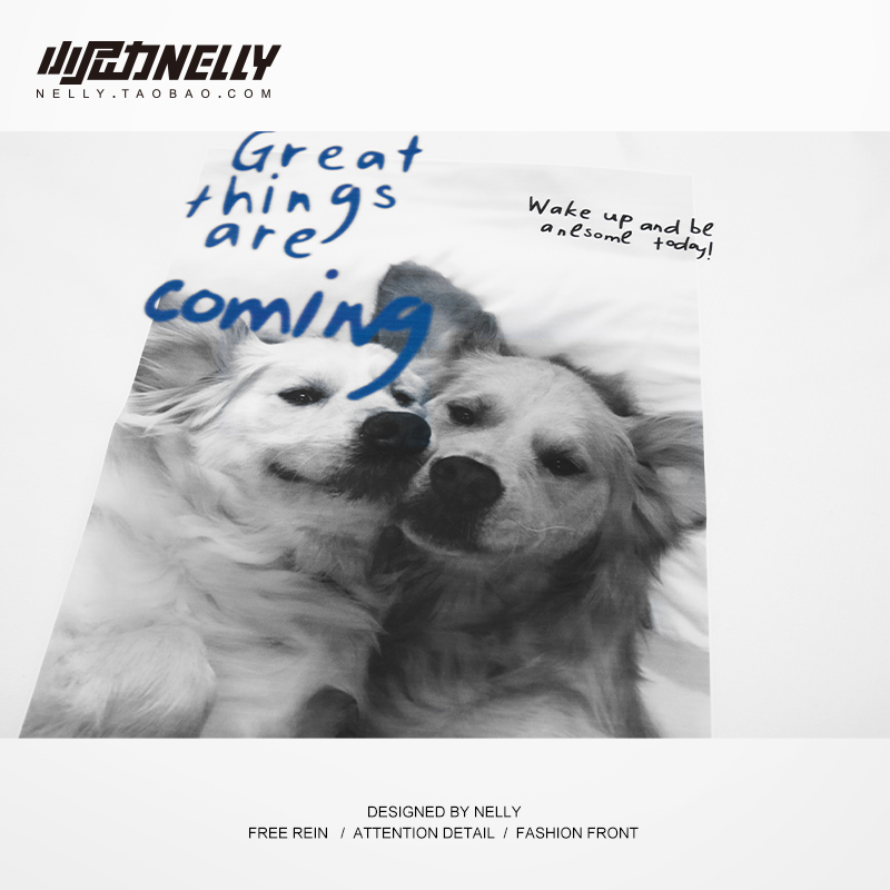 夏季美式薄款男女体恤潮流狗狗短袖t恤情侣款宽松百搭休闲打底衫
