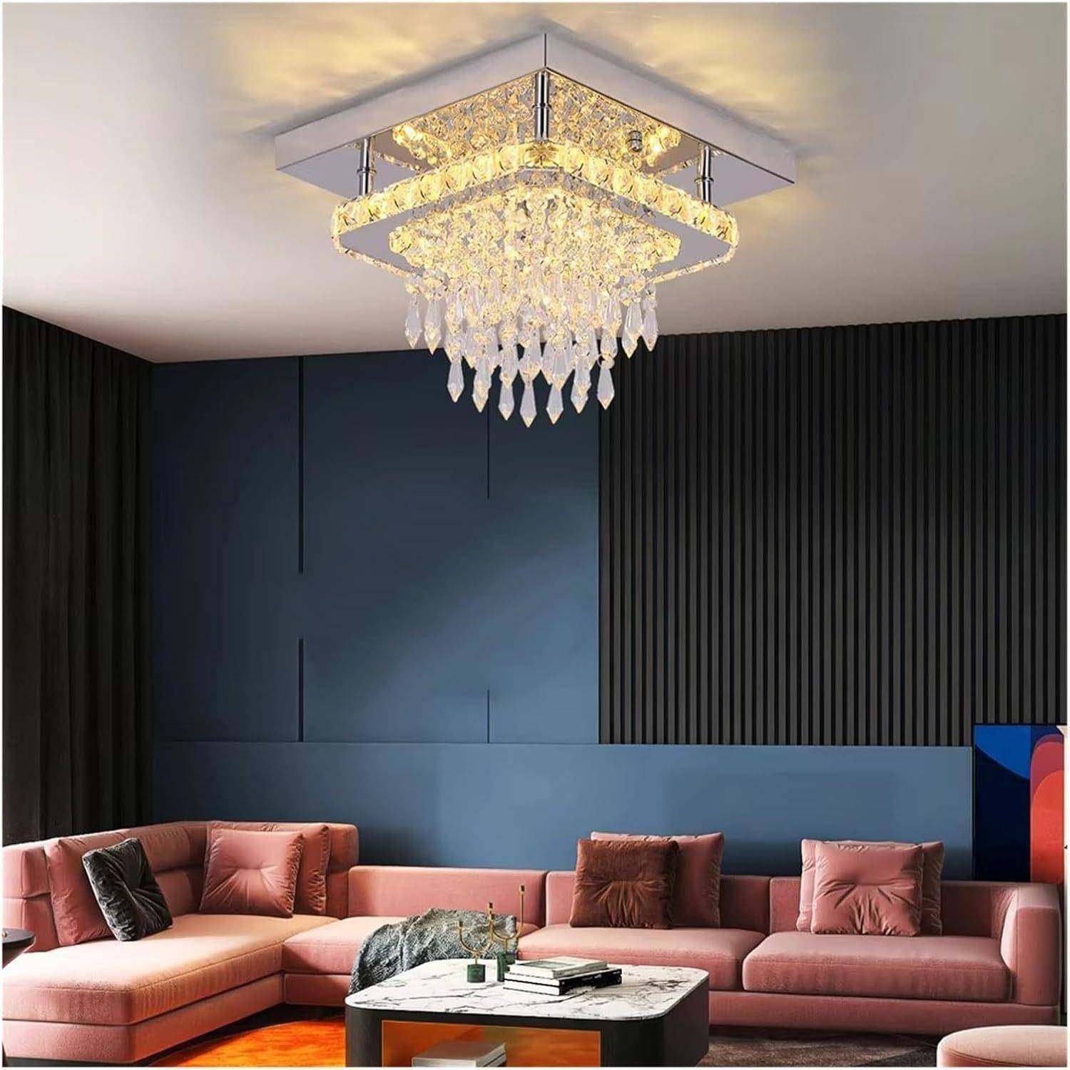 方形LED水晶吊灯现代简约客厅灯饰大气轻奢别墅餐厅灯具