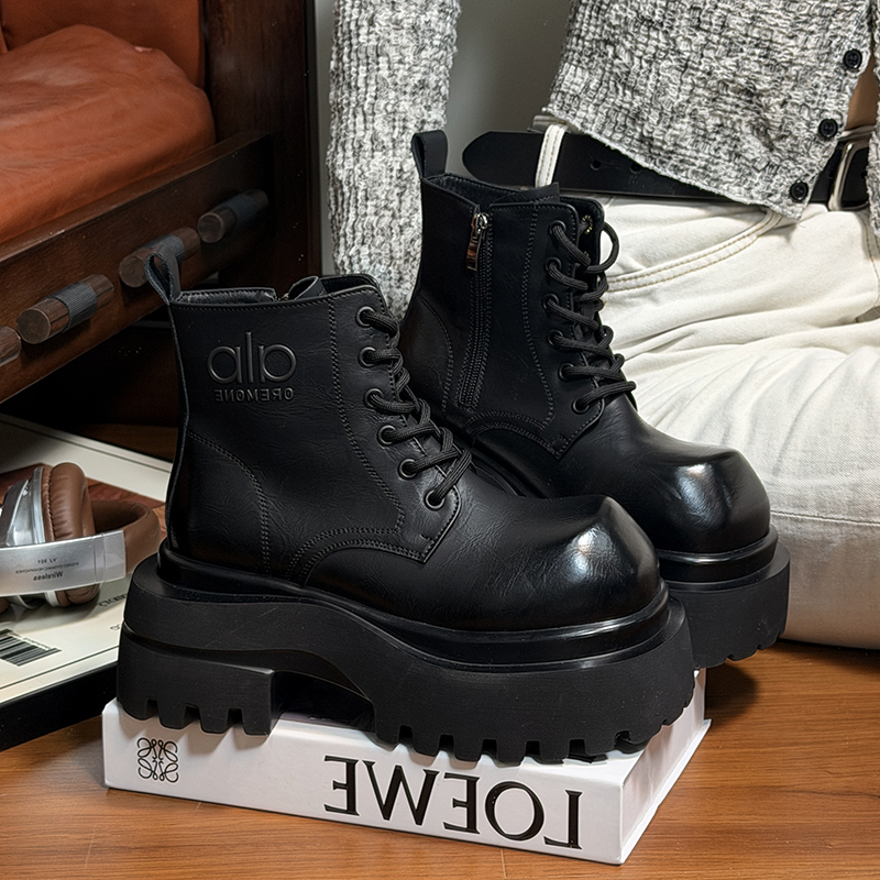 欧货真皮大头厚底松糕马丁靴女2025秋季新款英伦风小个子增高短靴