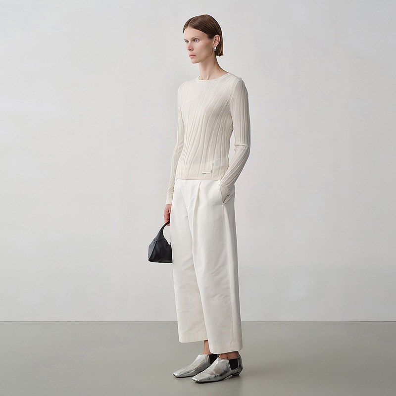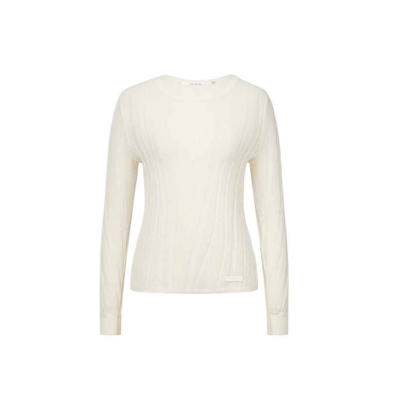 【商场同款】玛丝菲尔女装冬季新款白色山羊绒圆领打底衫