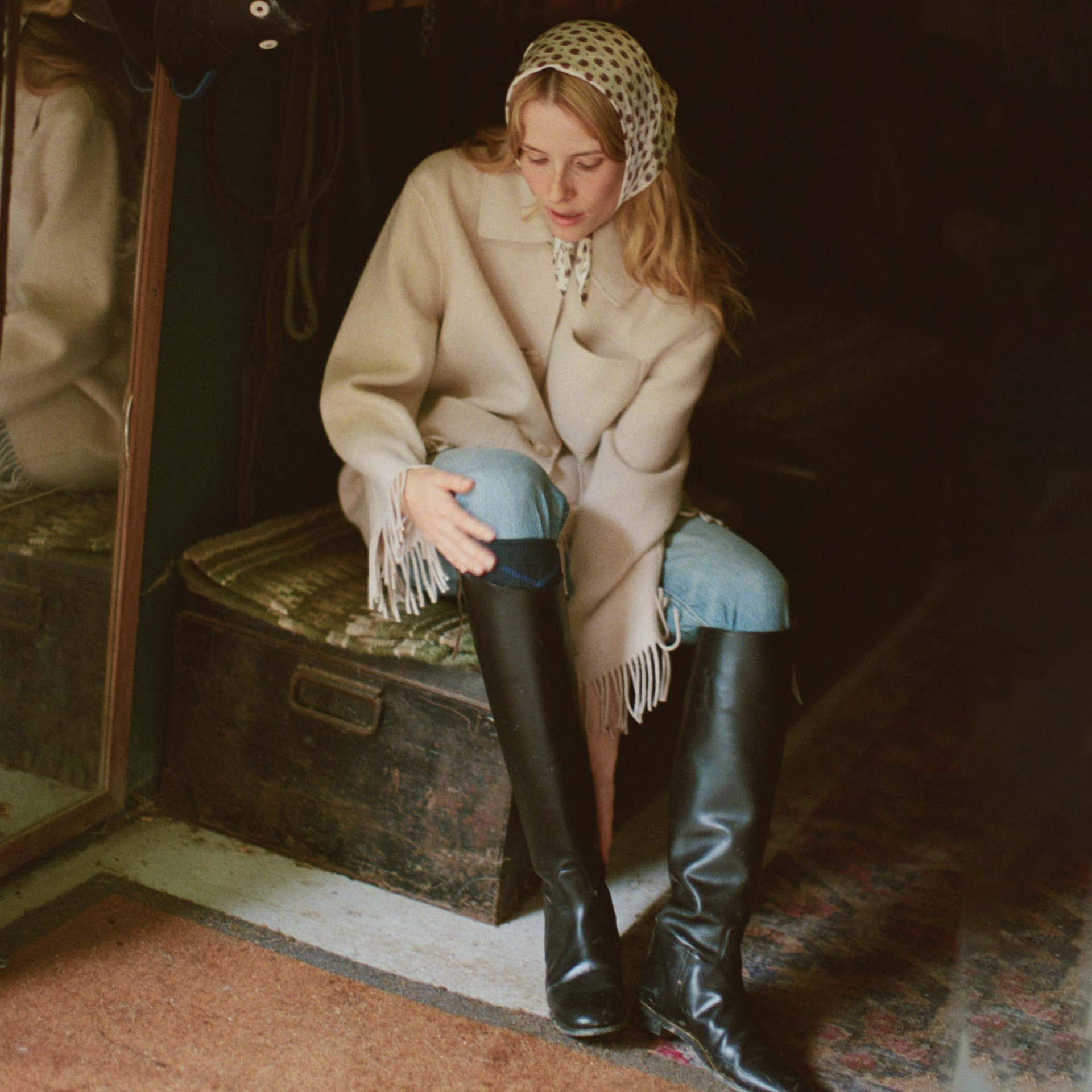 DOEN法式羊毛中长款毛呢外套女款秋冬2025新款流苏宽松双面呢大衣