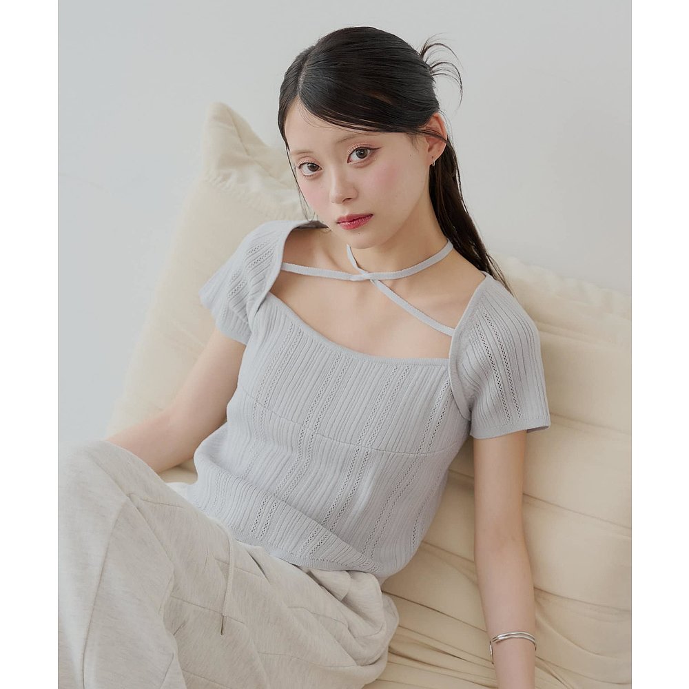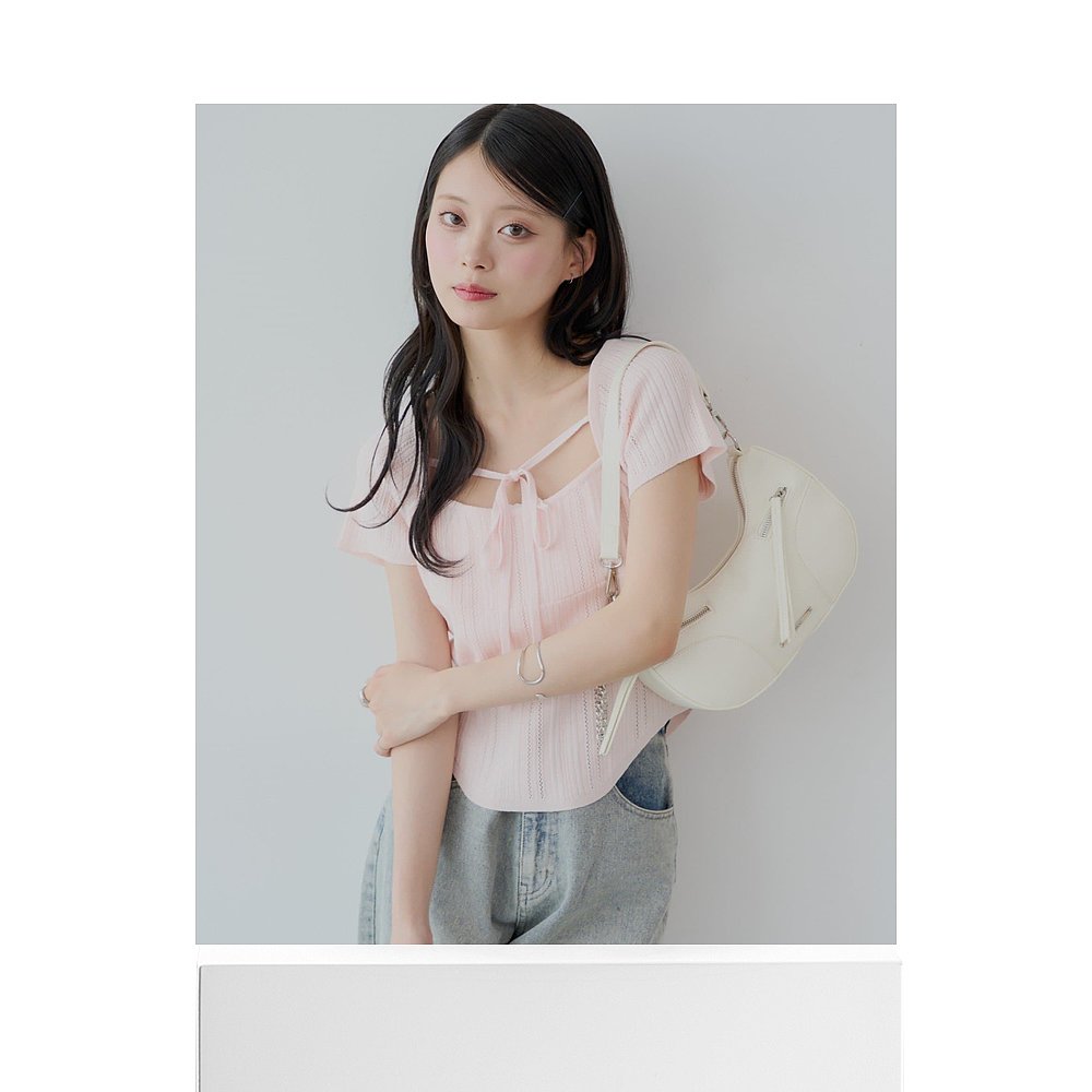 1h可退 日本直邮Chico 女士透视感蝴蝶结设计针织上衣 CHZ1051405