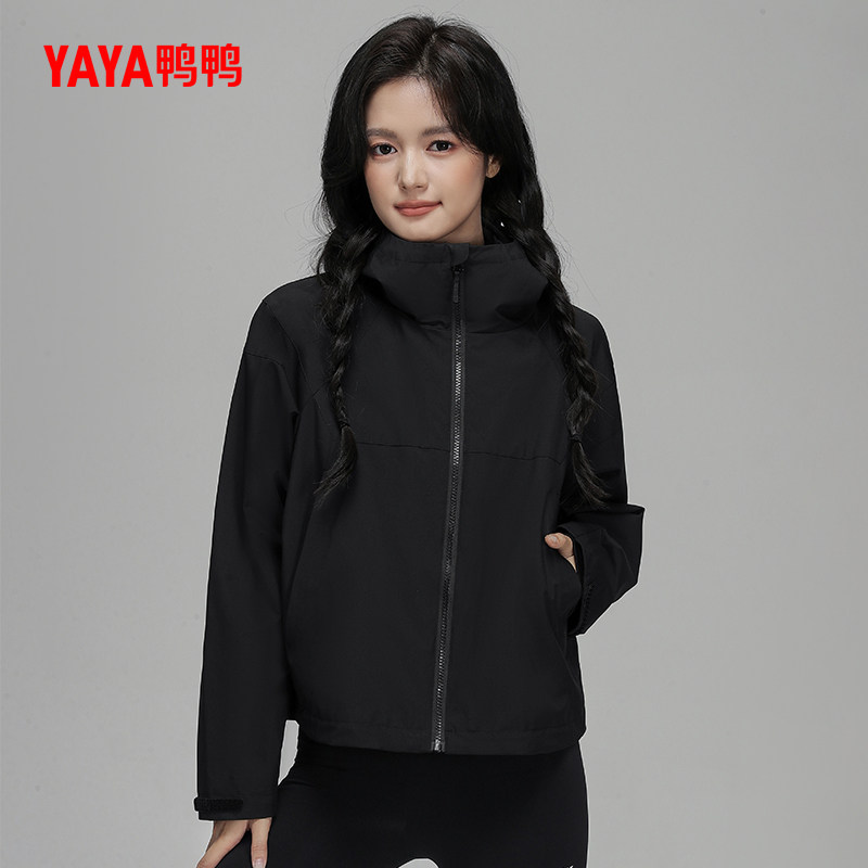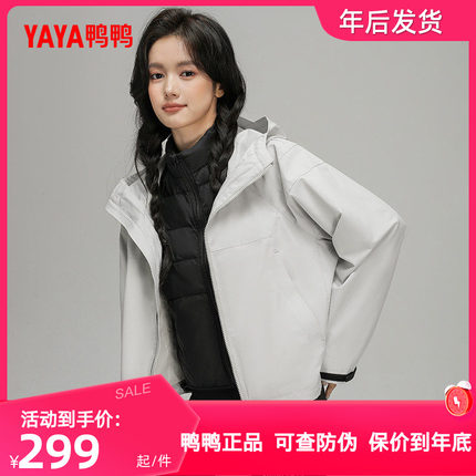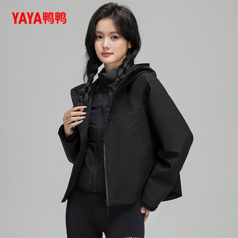 鸭鸭羽绒服女士短款2024秋冬季两件套宽松连帽可脱卸鹅绒内胆外套