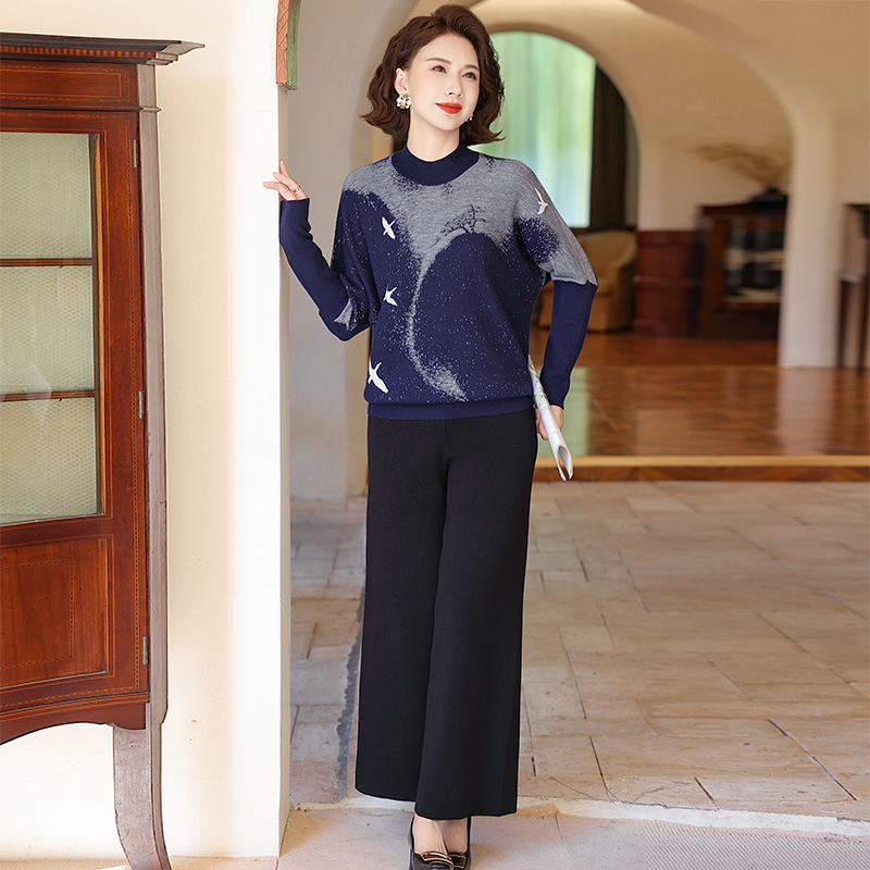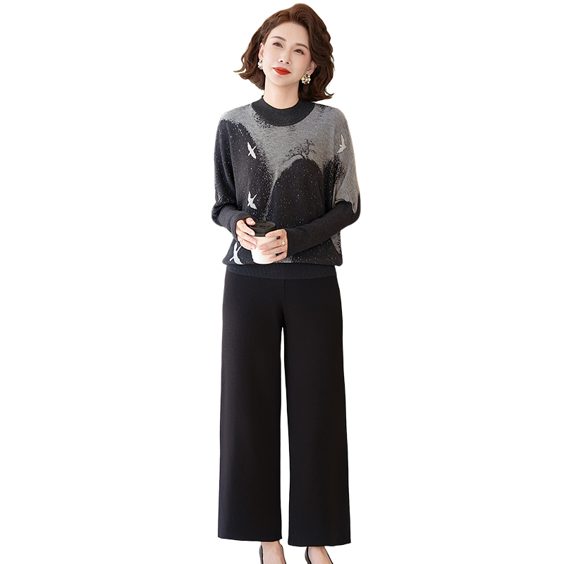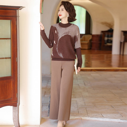 妈妈新款秋装休闲时尚套装洋气中老年女春秋长袖针织减龄两件套薄