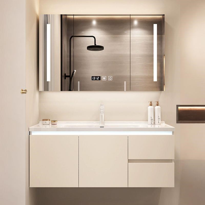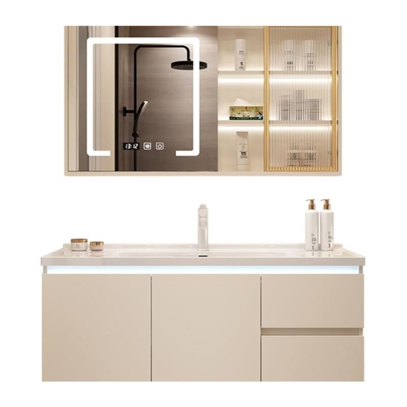 实木智能风浴室柜陶瓷一体盆卫生间奶油新款洗手洗脸池洗漱台组合
