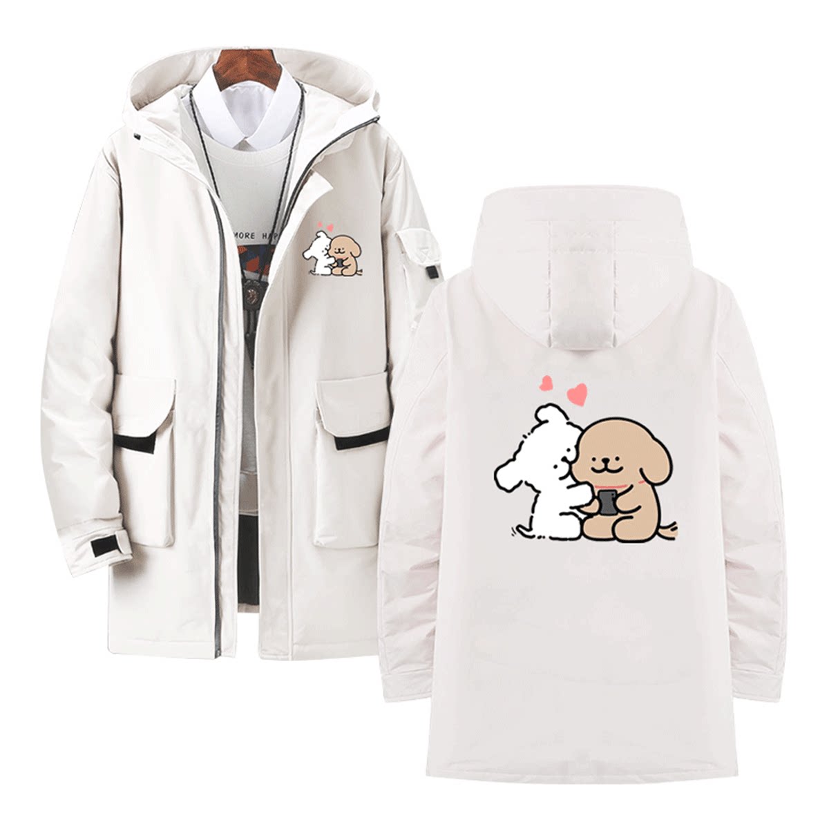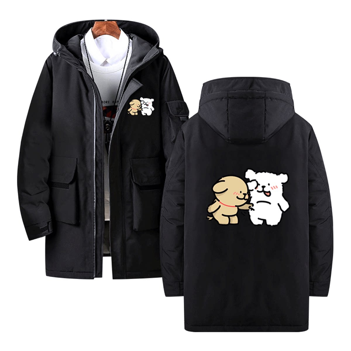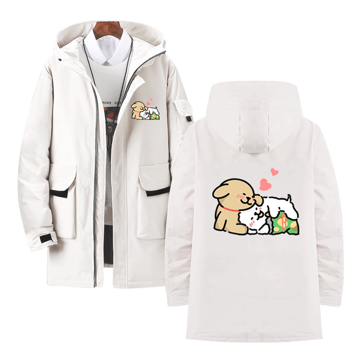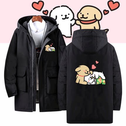 线条小狗周边男女情侣可爱卡通多巴胺秋冬衣服连帽外套定制羽绒服