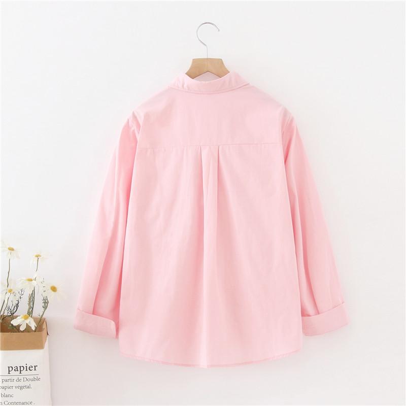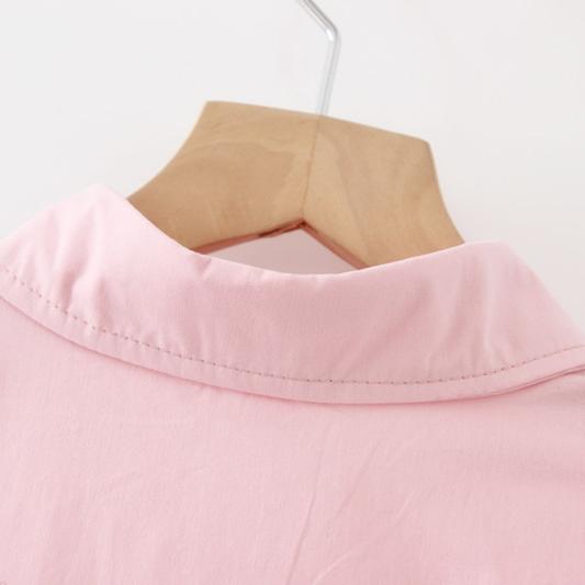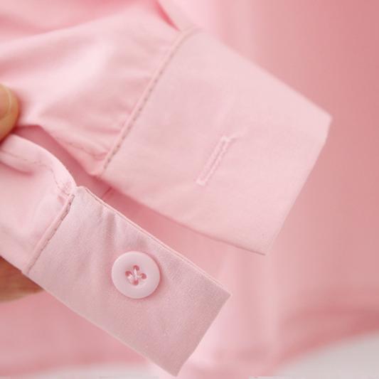 2025春夏季娃娃领长袖衬衫淡粉色学院风经典内搭上衣女装棉质外穿