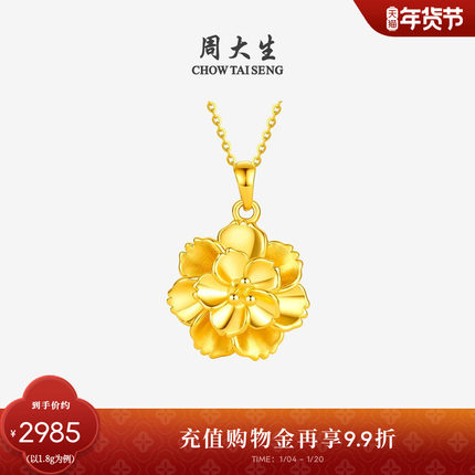 新年礼物周大生黄金牡丹花吊坠女款足金硬金大金花项链挂坠送妈妈