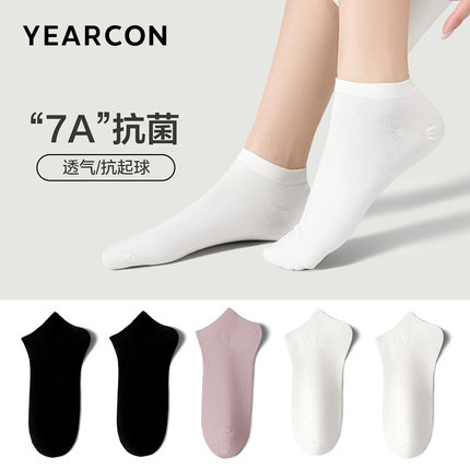 意尔康女袜跑步运动休闲短袜透气春秋女士抗菌7A袜子白色