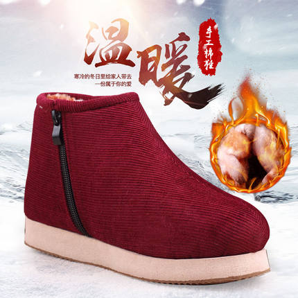冬季手工棉鞋居家中老年棉拖鞋室内包跟加绒防滑冬天保暖鞋女加厚