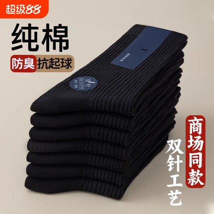 袜子男纯棉防臭中筒袜春秋透气运动袜双针新疆棉诸暨黑色商务男士