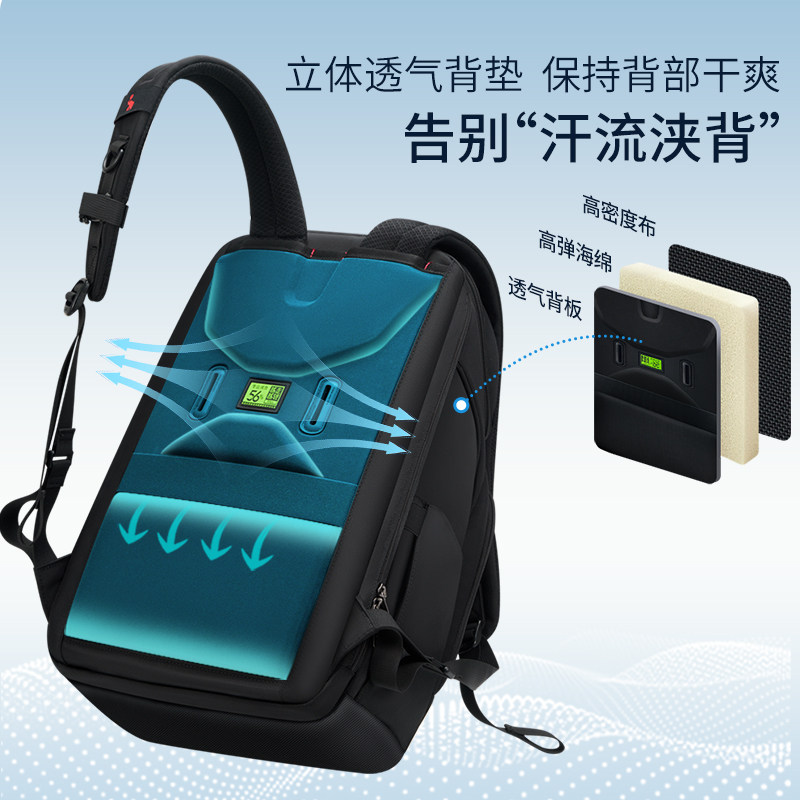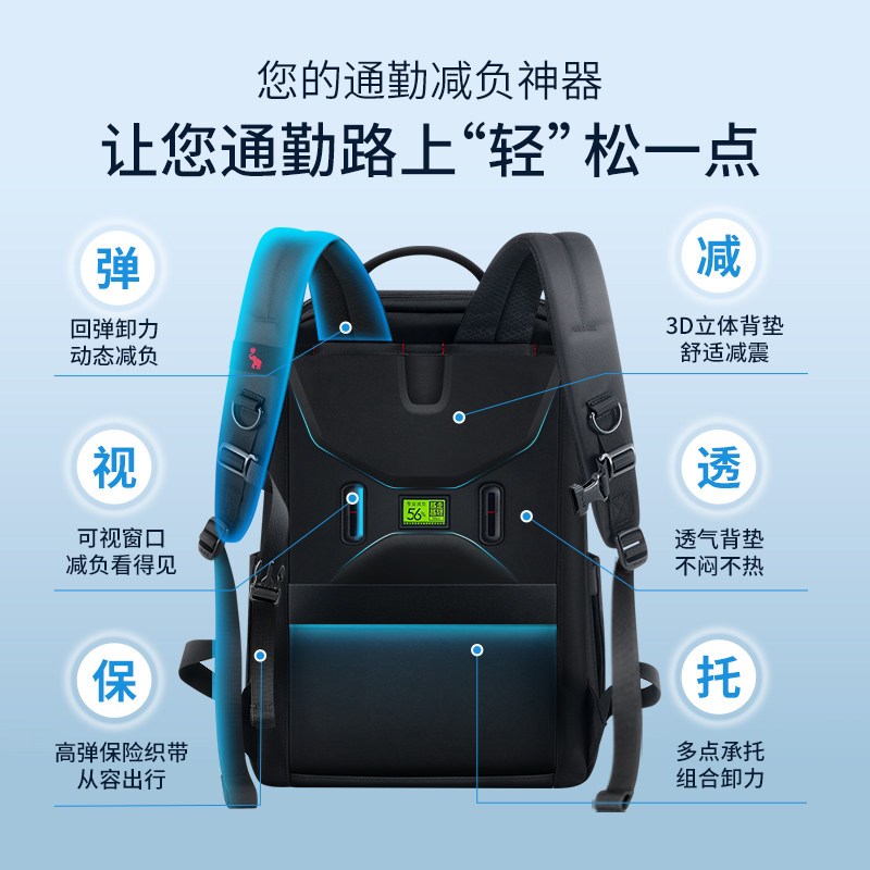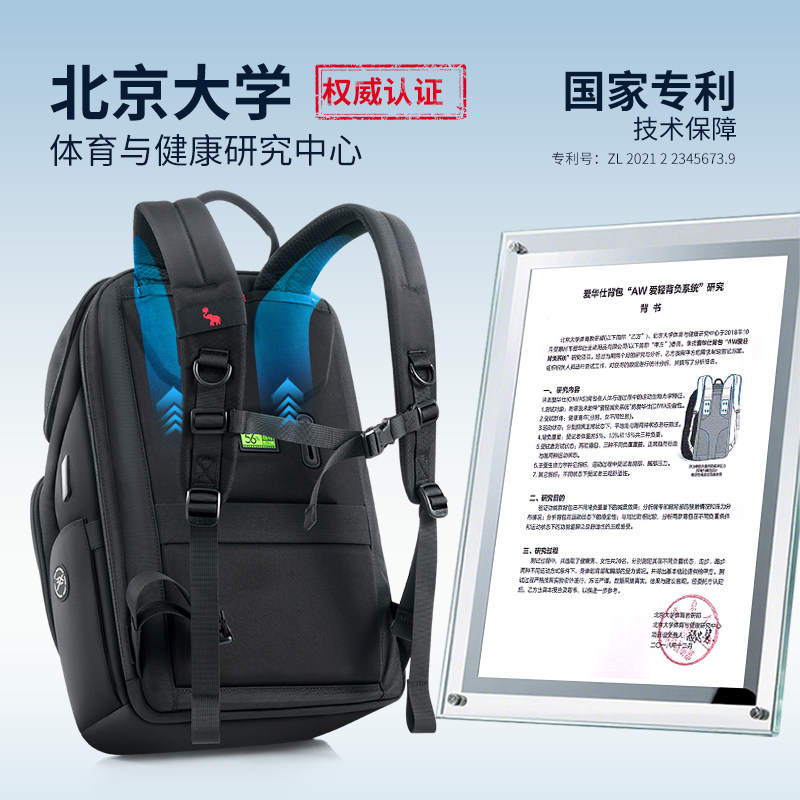 爱华仕电脑背包男商务出差上班通勤15.6寸大容量轻便多隔层双肩包