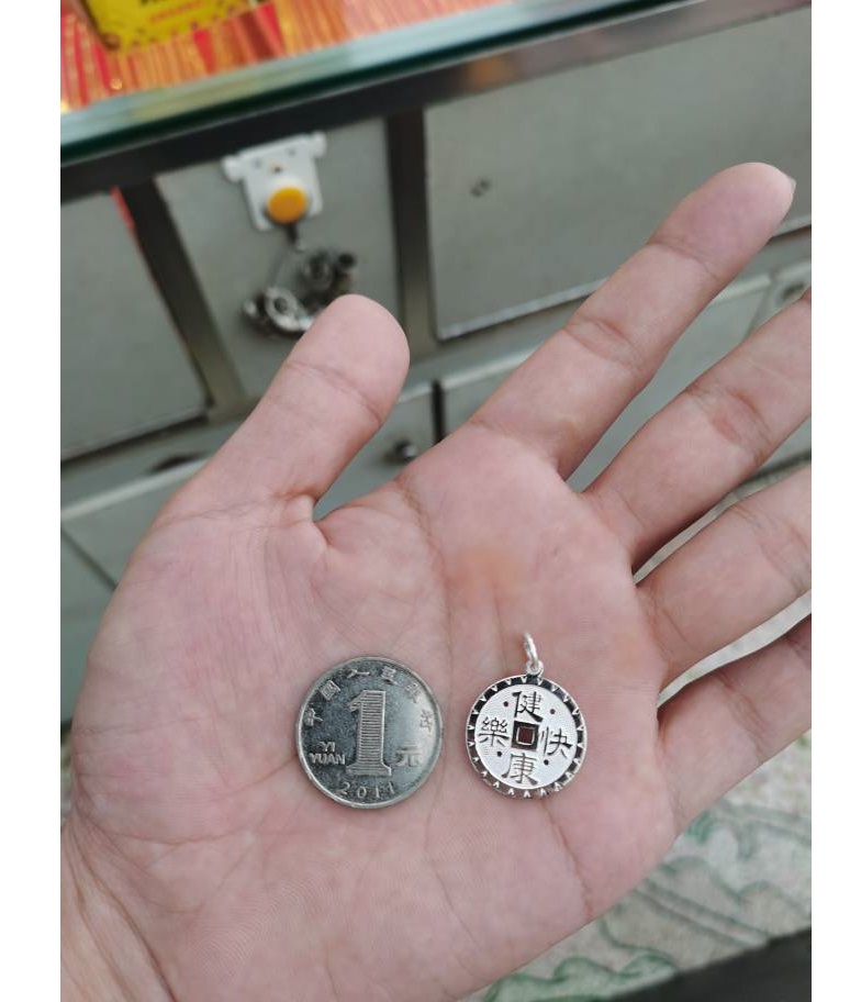 纯银正品足银999小孩儿童宝宝出入平安健康快乐平安扣吊坠 铜钱币