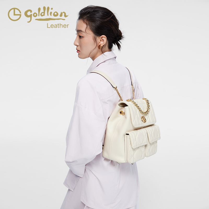金利来真皮女士包包时尚百搭双肩包2025新款小香风菱格通勤小背包