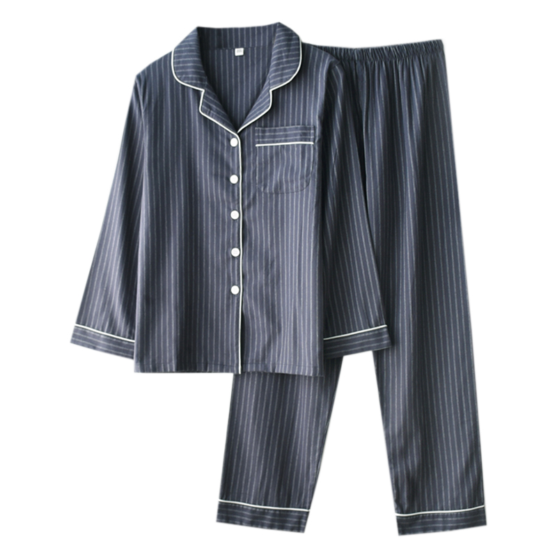 日系竖条纹睡衣男士女春秋冬季纯棉绒布宽松加大码情侣家居服套装