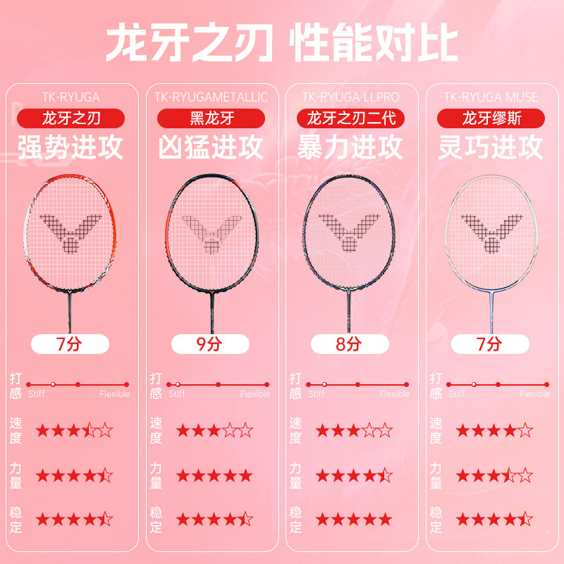 2026新款龙牙之刃缪斯victor胜利羽毛球拍MUSE龙母牙威克多粉龙牙