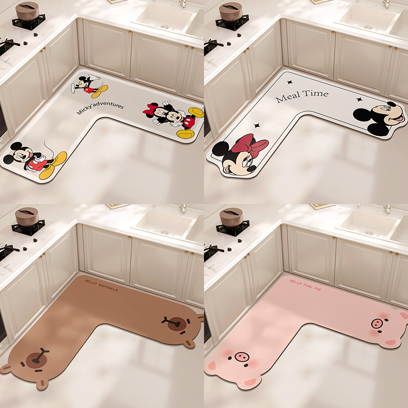 卡通米奇厨房专用地垫L形防滑防油脚垫子可擦免洗硅藻泥吸水地毯