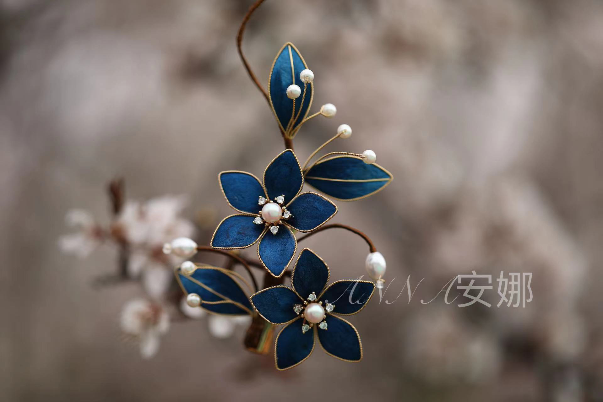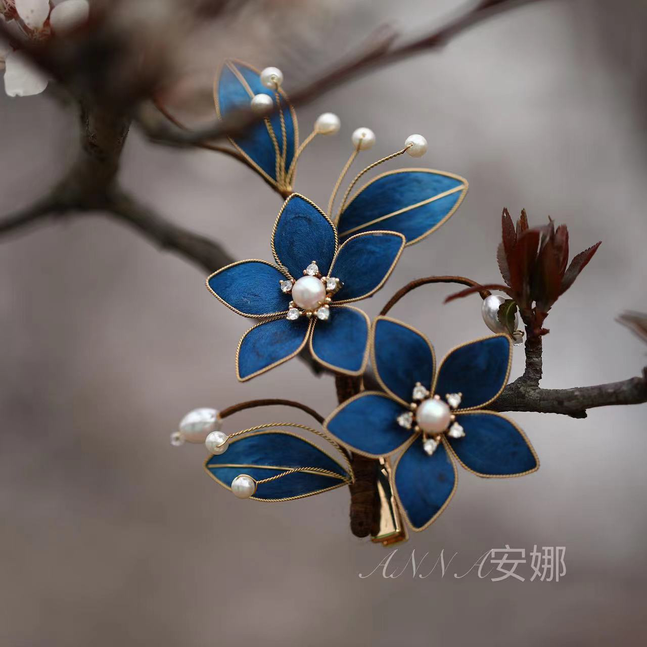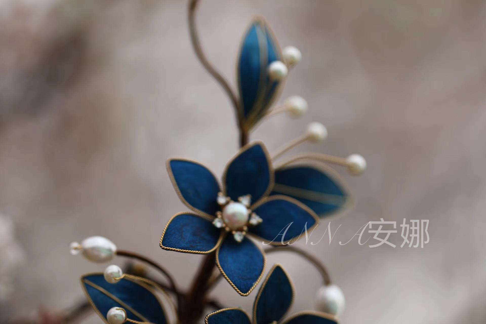 凤尾发卡原创设计手工掐丝绒花发簪古风汉服旗袍头饰132