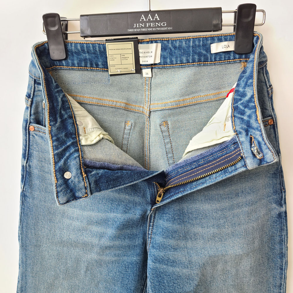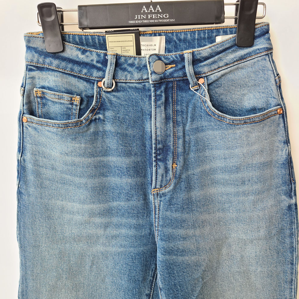 5043澳洲高端牛仔 十字麦穗直筒高腰牛仔裤 修身小脚裤单宁长裤