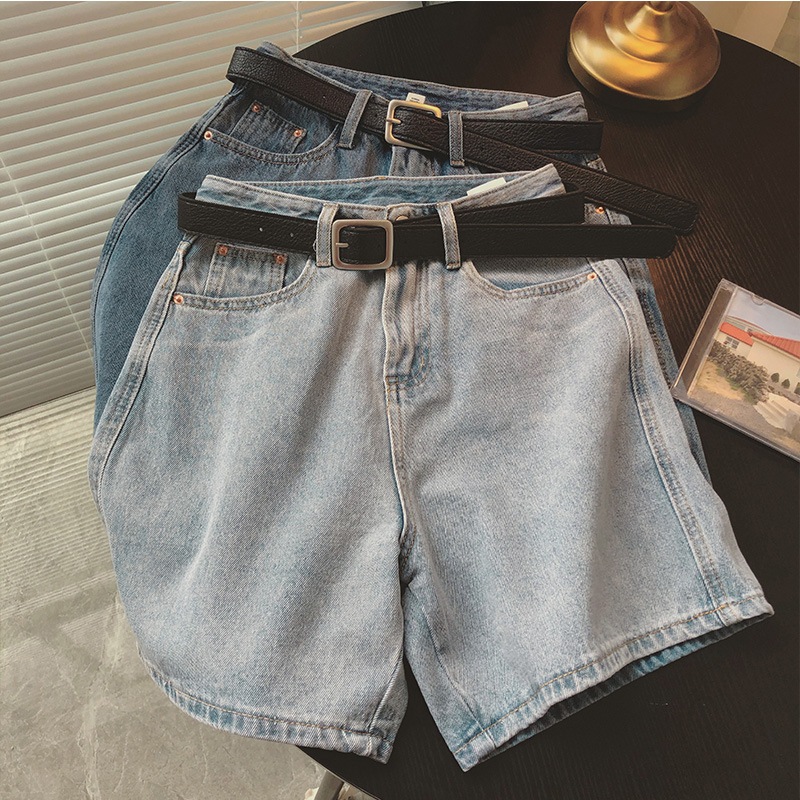 高腰牛仔短裤女夏薄款2024新款韩版宽松显瘦阔腿A字五分热裤子女