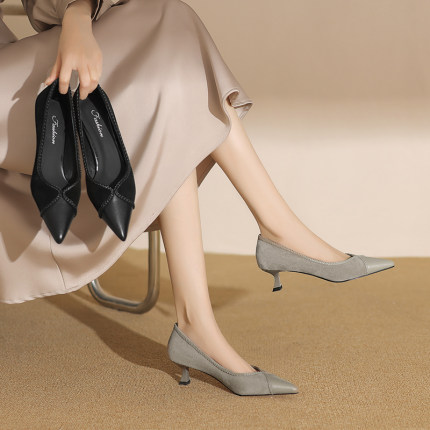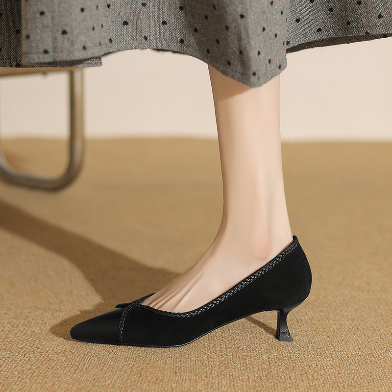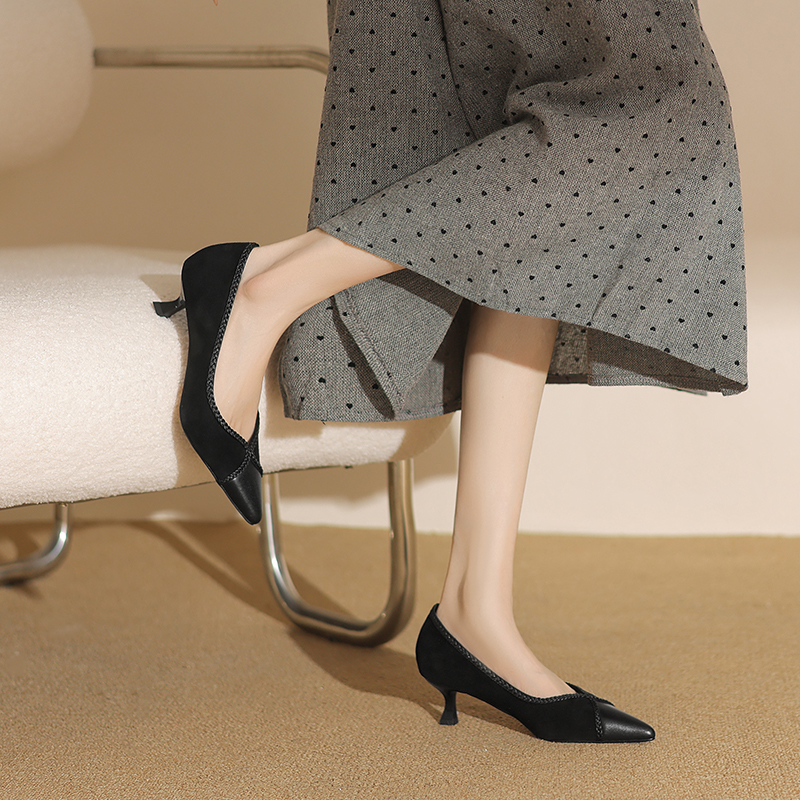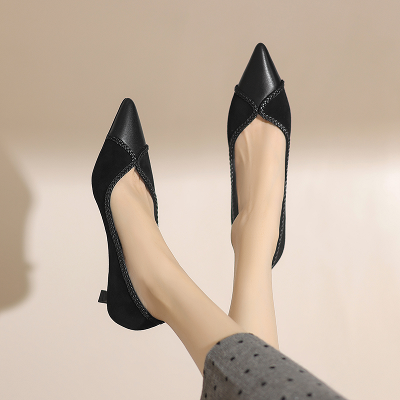 春夏季新款简约百搭通勤单鞋法式优雅真皮尖头浅口单鞋女