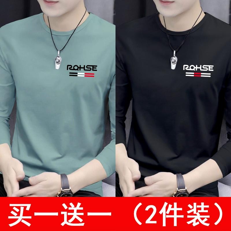 2件装男士长袖t恤纯棉打底衫圆领秋衣宽松百搭休闲体恤男上衣潮流