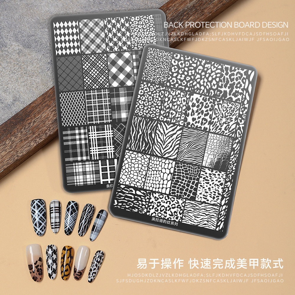 美甲转印钢板美拉德豹纹卡通KT印花硅胶印章雪花圣诞模具美甲工具
