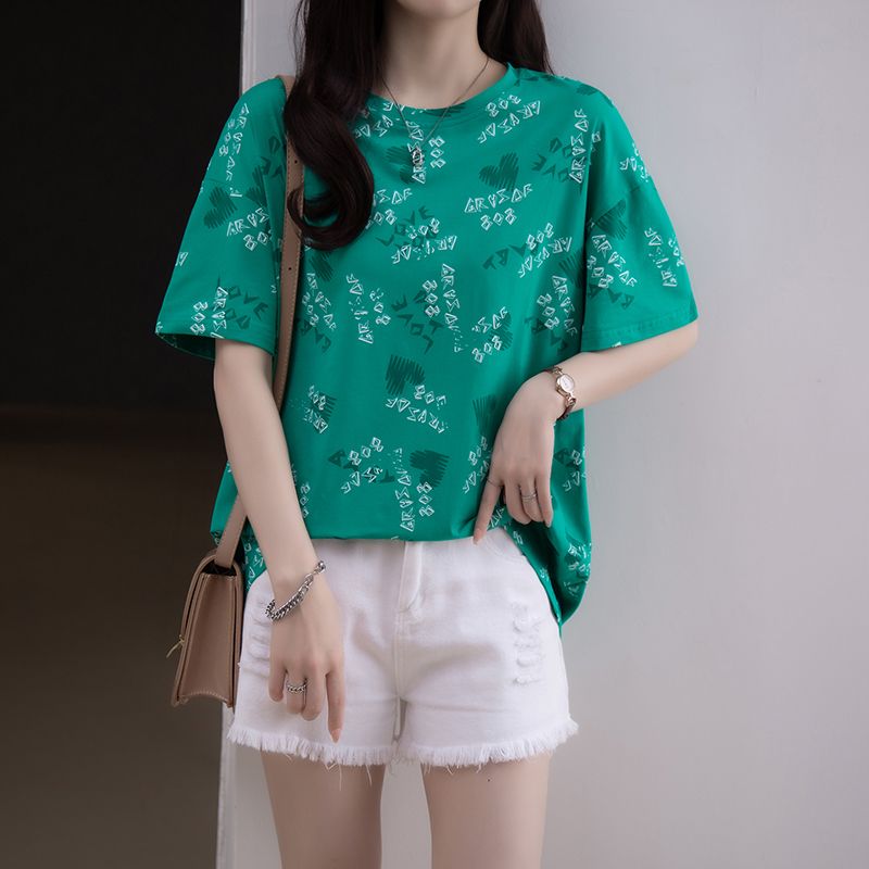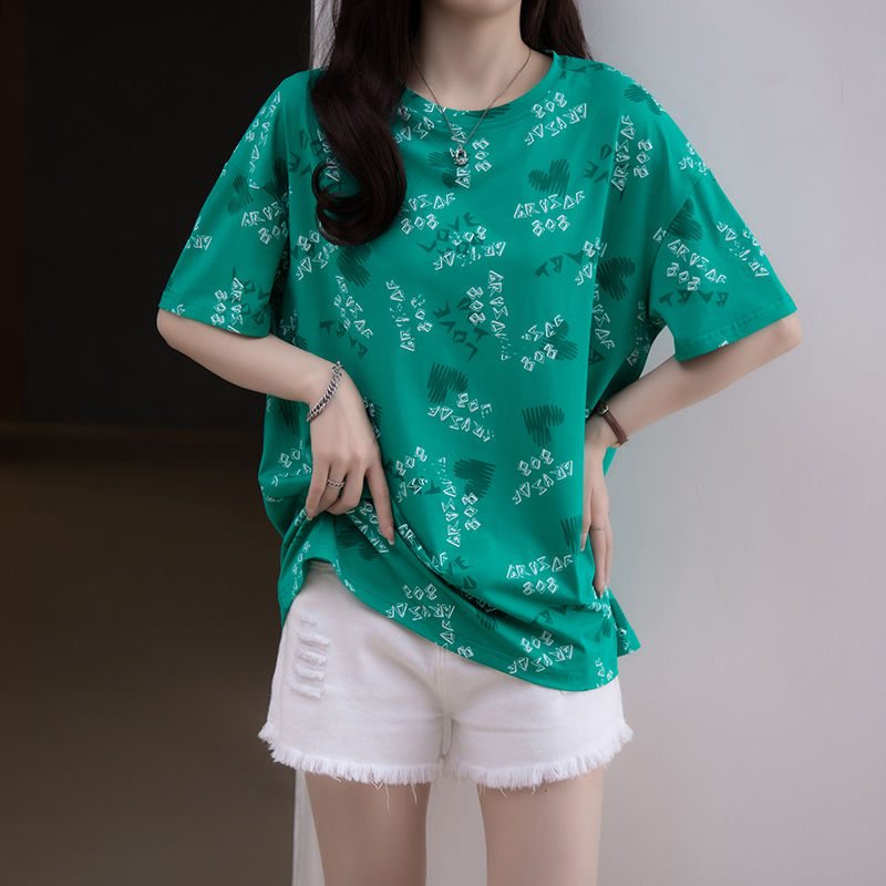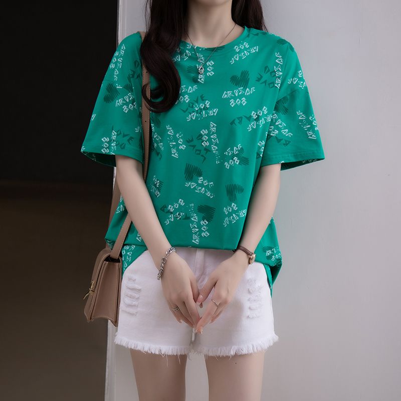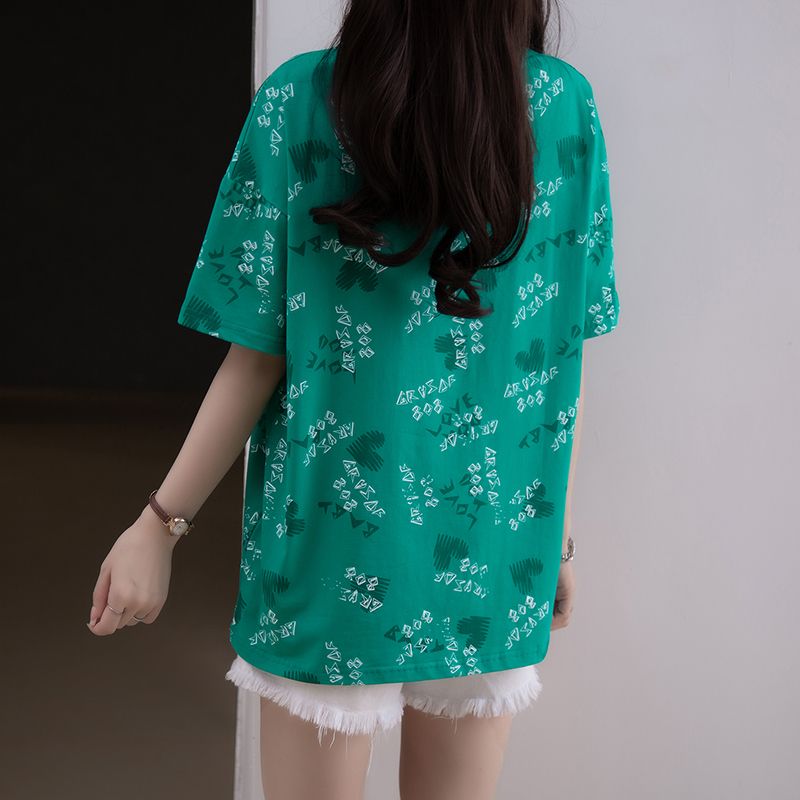 夏季新款加大码女装纯棉短袖T恤女胖mm宽松显瘦休闲洋气遮肚上衣
