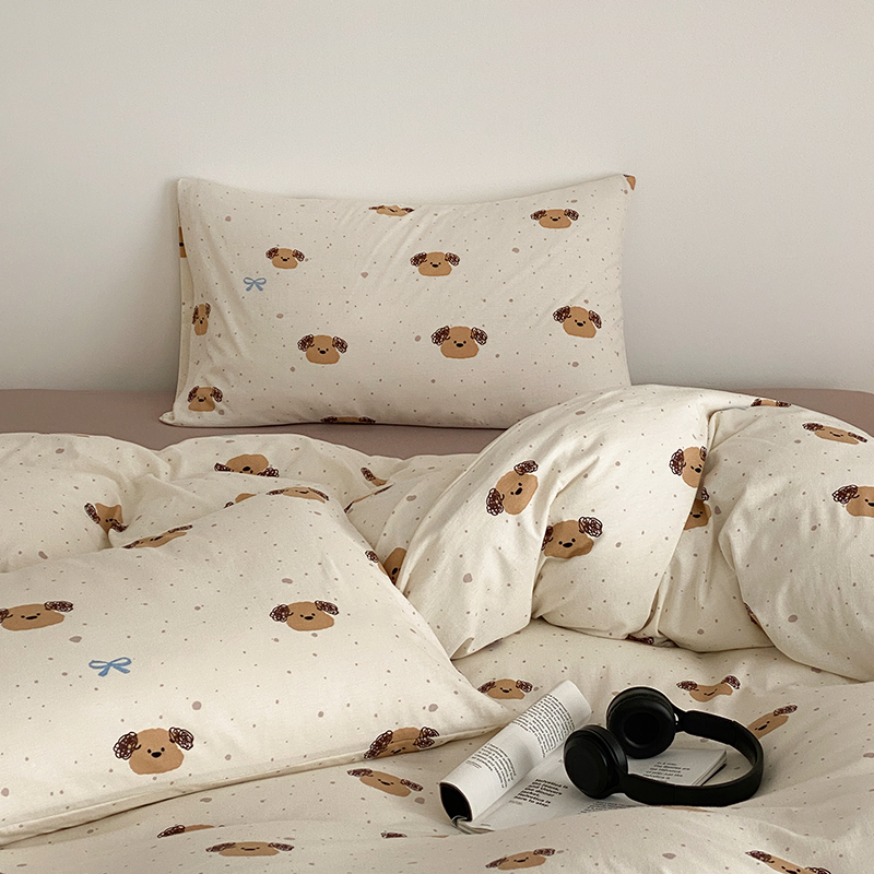 【土豆小狗】可爱儿童全棉天竺棉四件套裸睡纯棉针织被套床单床品