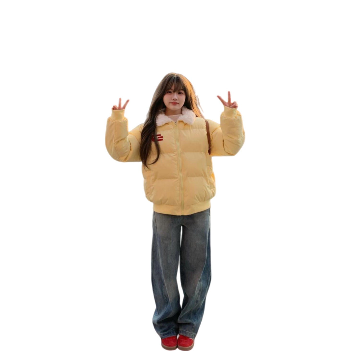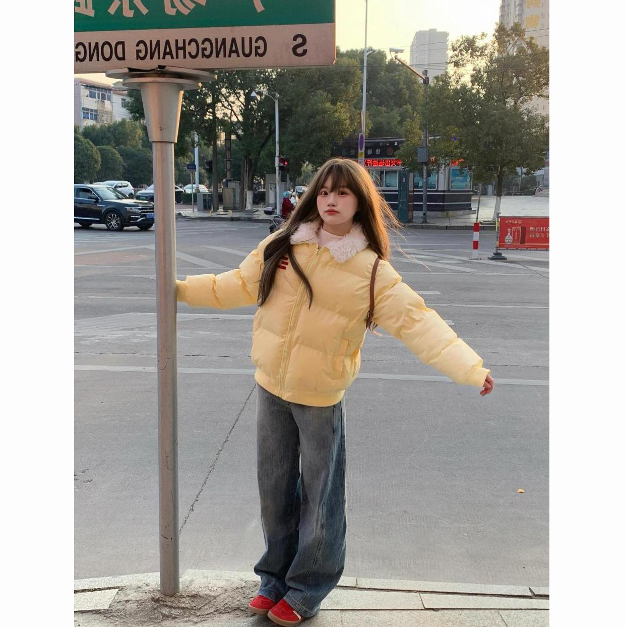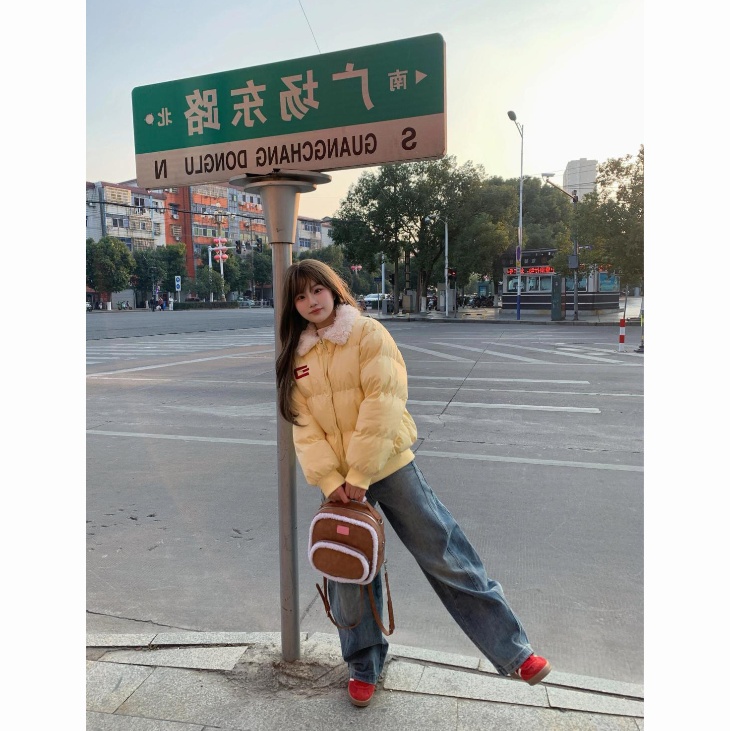 简约羊羔毛翻领短款棉服女冬季小个子宽松加厚保暖面包服棉衣潮牌