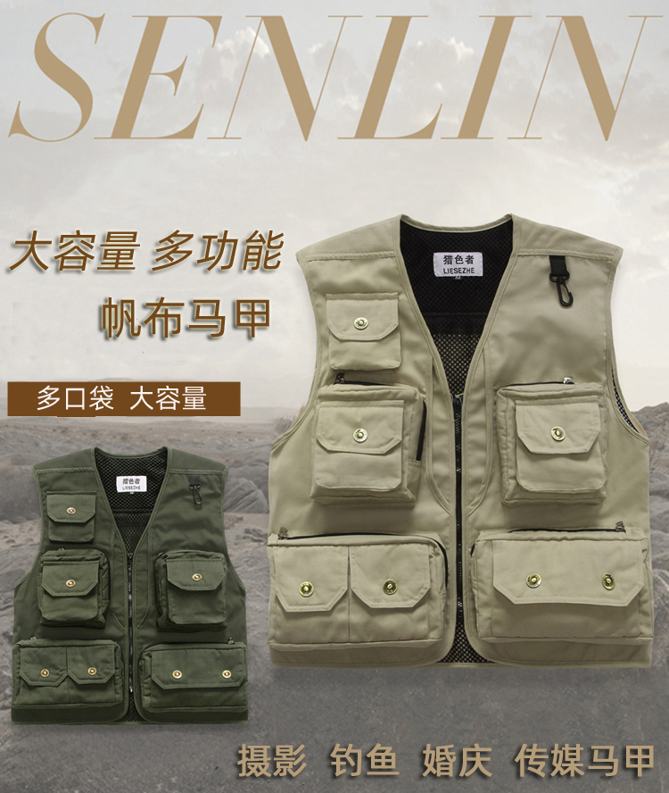 户外帆布工装军旅风多口袋机能马甲男摄影钓鱼志愿者坎肩背心定制